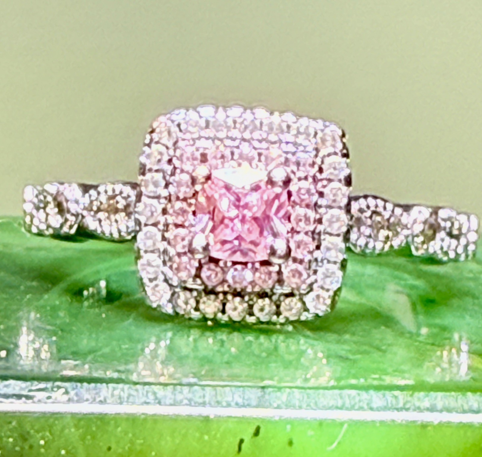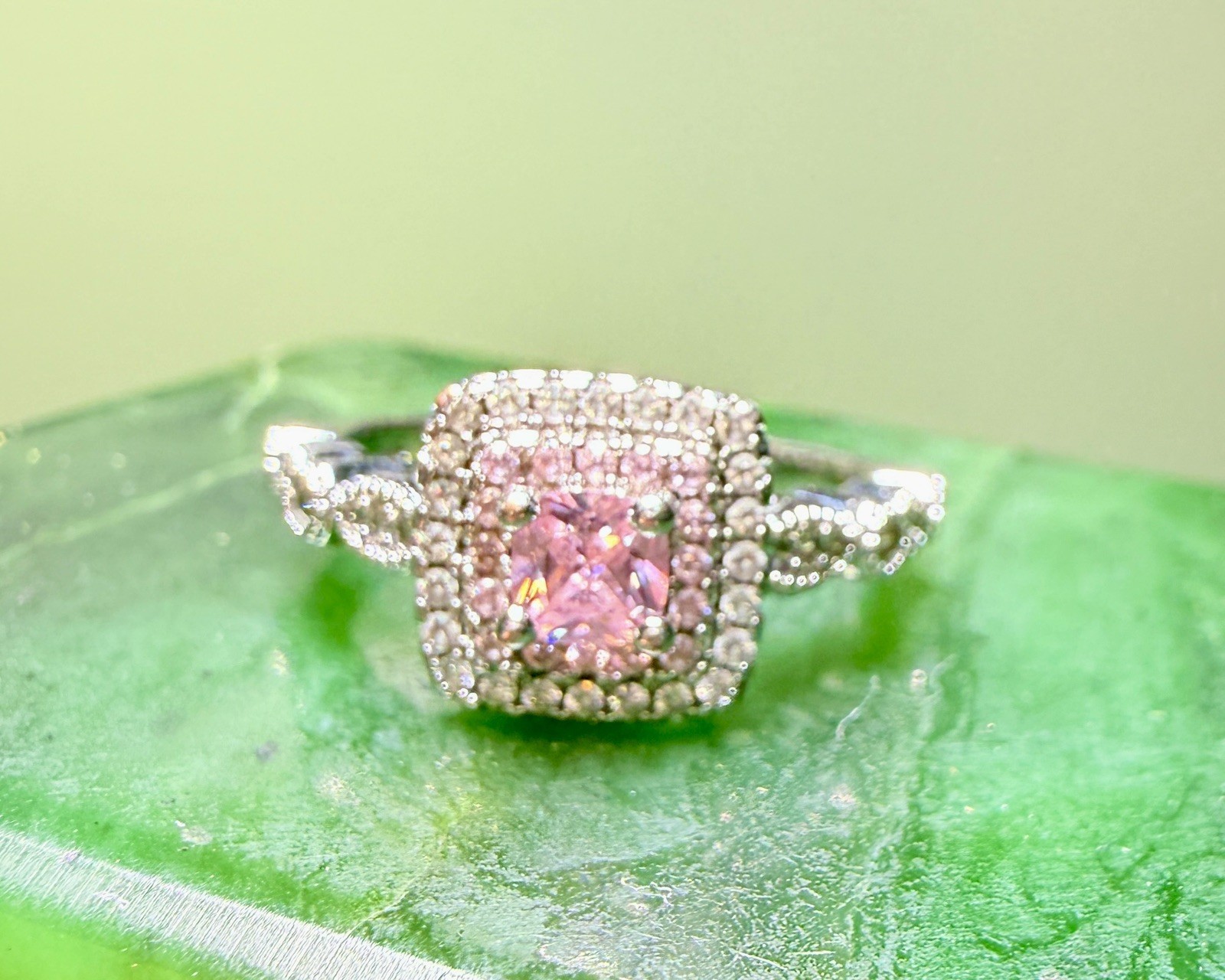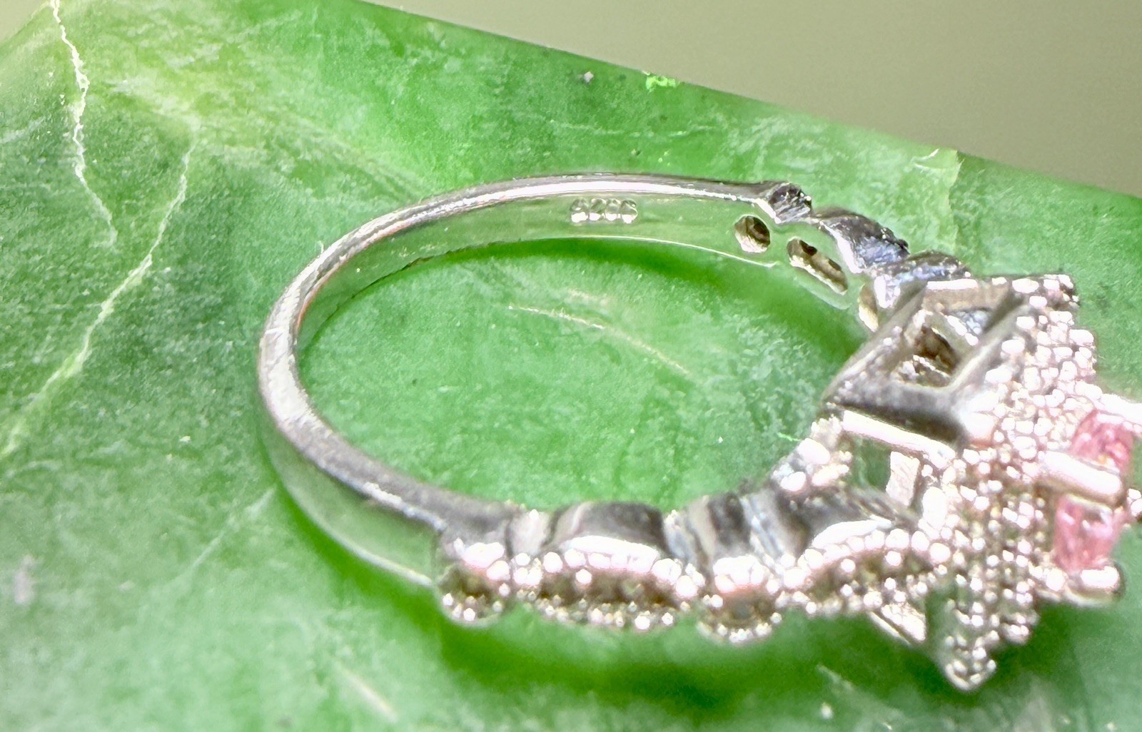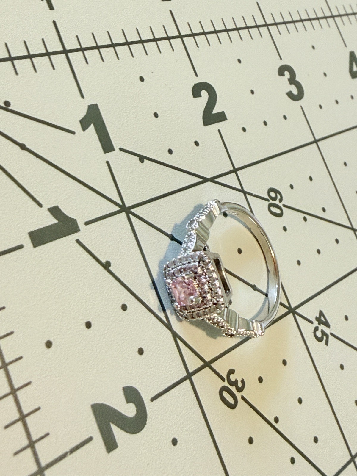 как выглядит R3 Solid 925 Sterling Silver Ring Pink Cubic Zirconia Square Cut Stone Size 7 фото