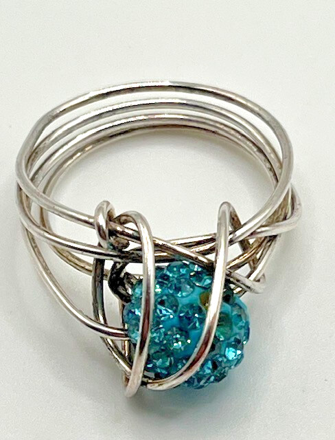 Artist Made Silver Wire Wrap Ring With Faceted Teal Bead Modern Size 8.5