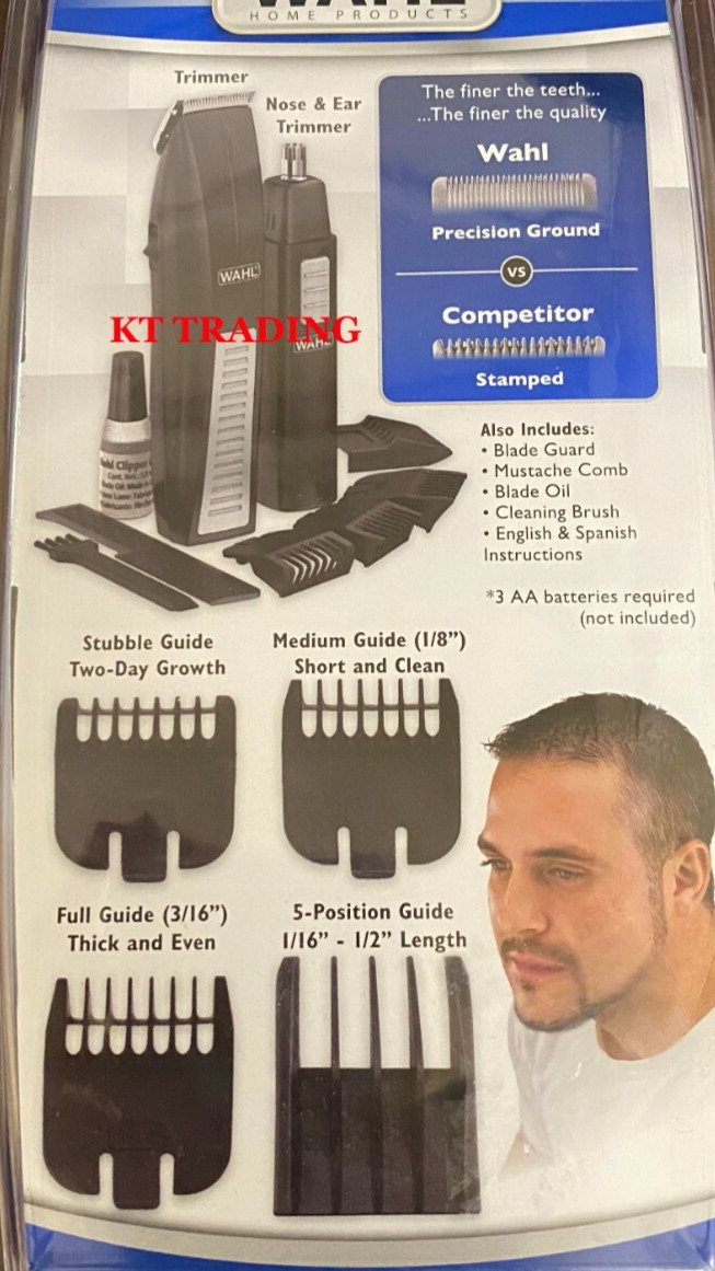 WAHL Nose Ear Body Beard Hair Wet/Dry BATTERY Precision Blade Trimmer Set