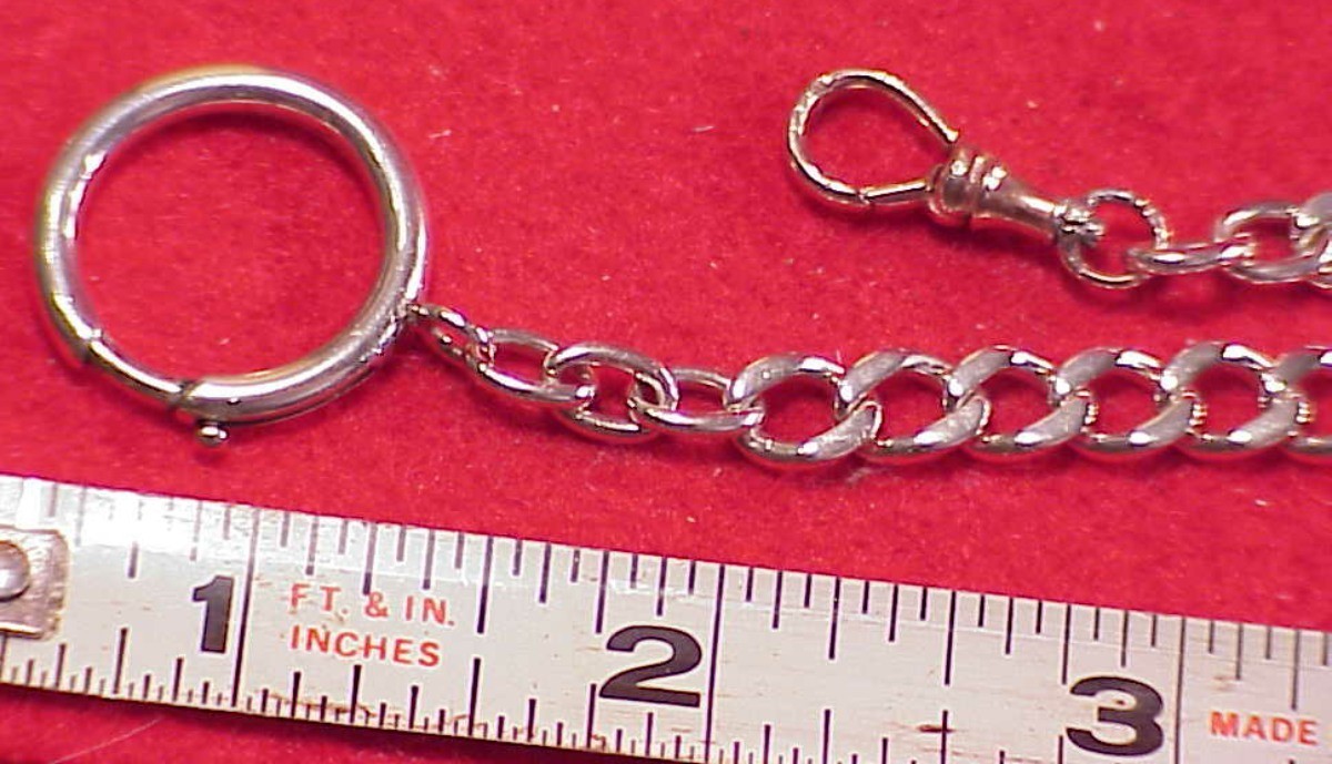 как выглядит Vintage EARLY NICKEL SILVER 22MM SPRING RING Mans Pocket Watch Chain 14 inch фото