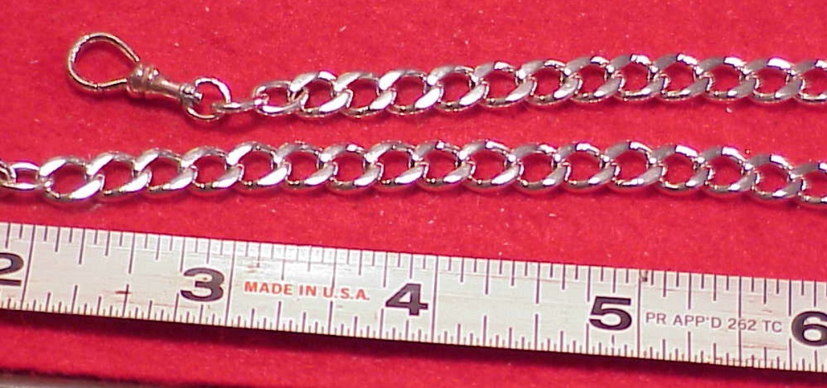 Vintage EARLY NICKEL SILVER 22MM SPRING RING Mans Pocket Watch Chain 14 inch