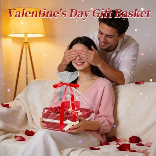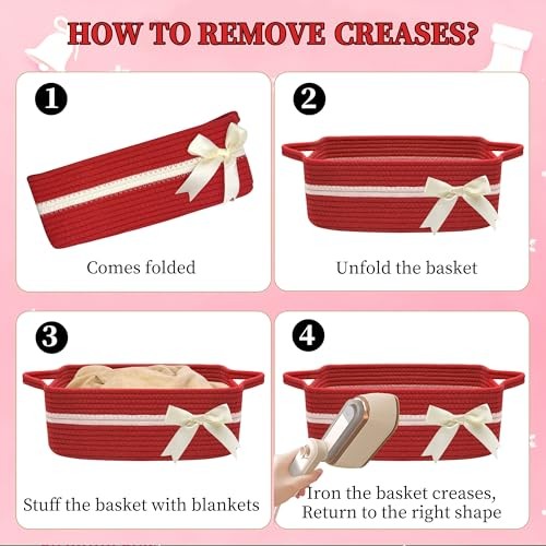 Gift Baskets Empty for Kids, Storage Basket for 13L x 10W x 5H Red White