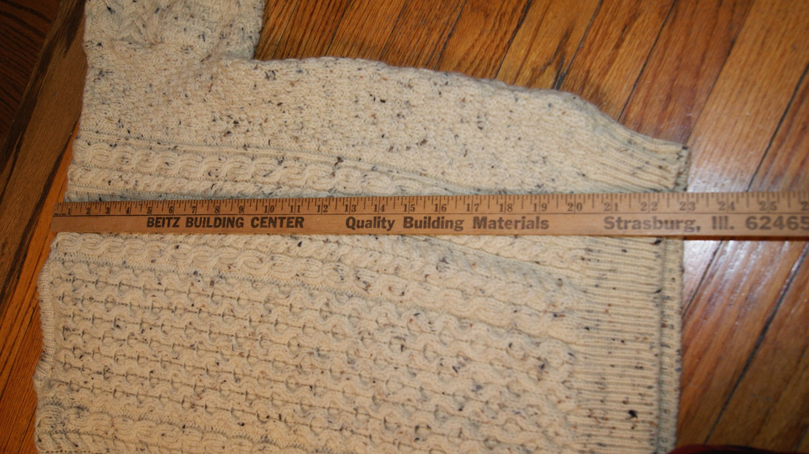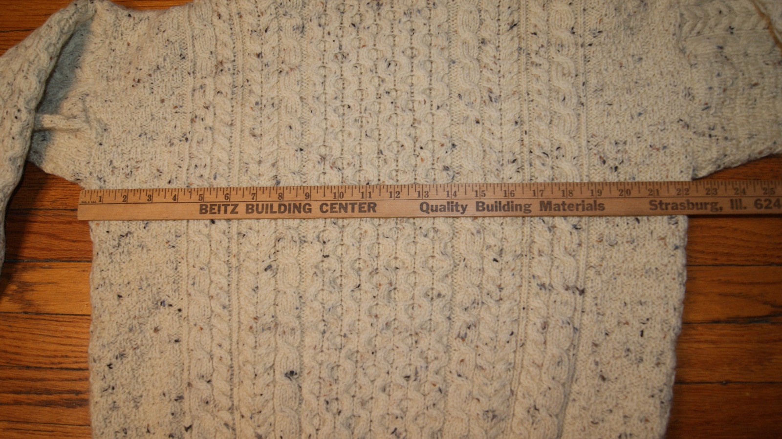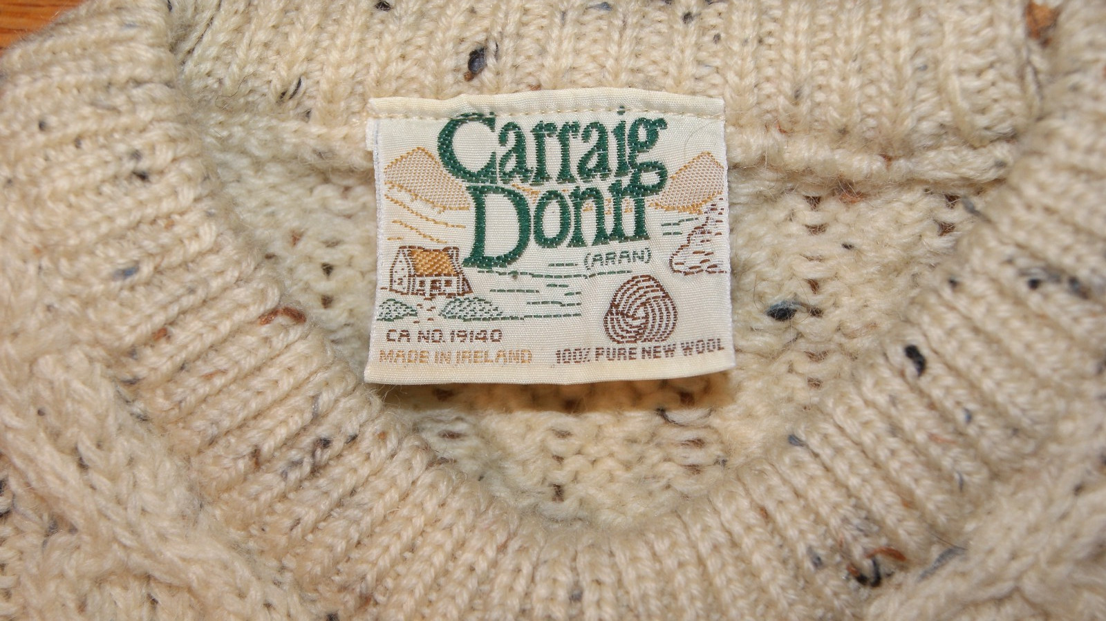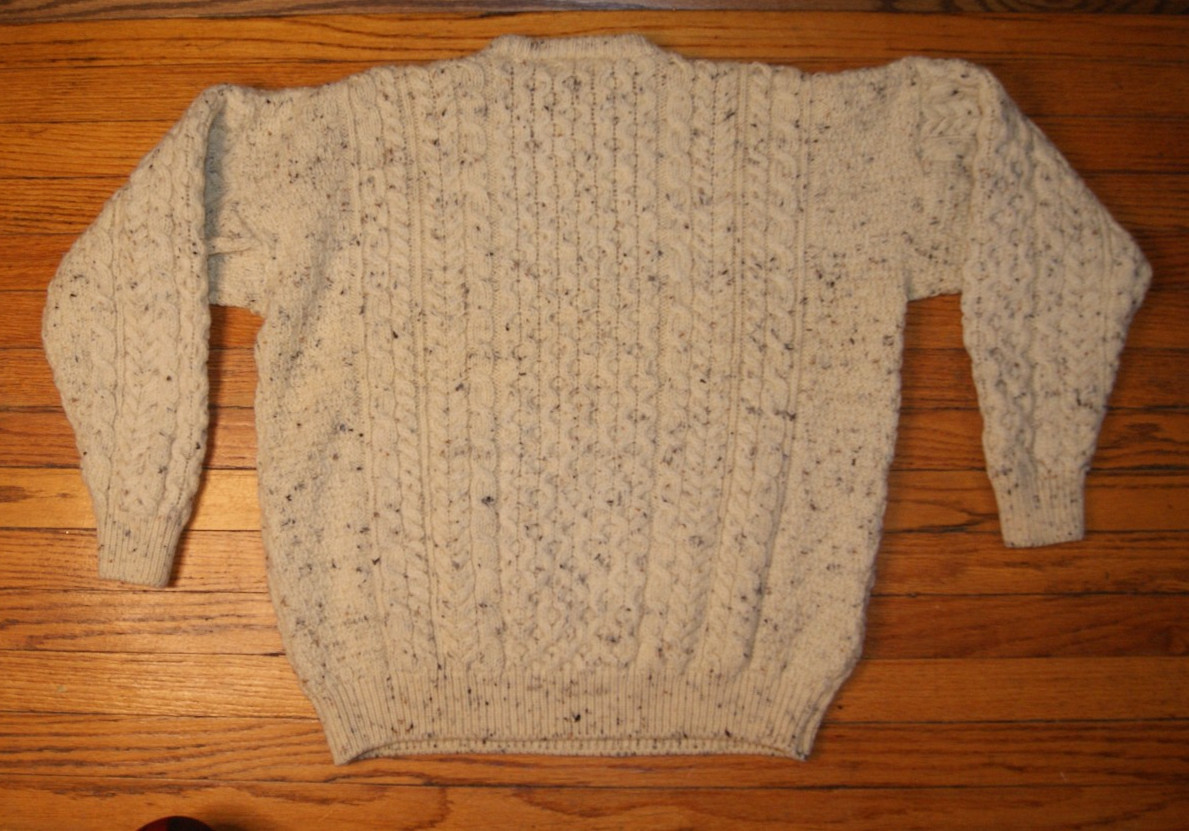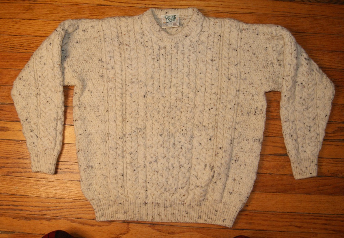 как выглядит VTG Carraig Donn Wool Sweater Cable Knit Fisherman Flecked M Ivory Aran Ireland фото