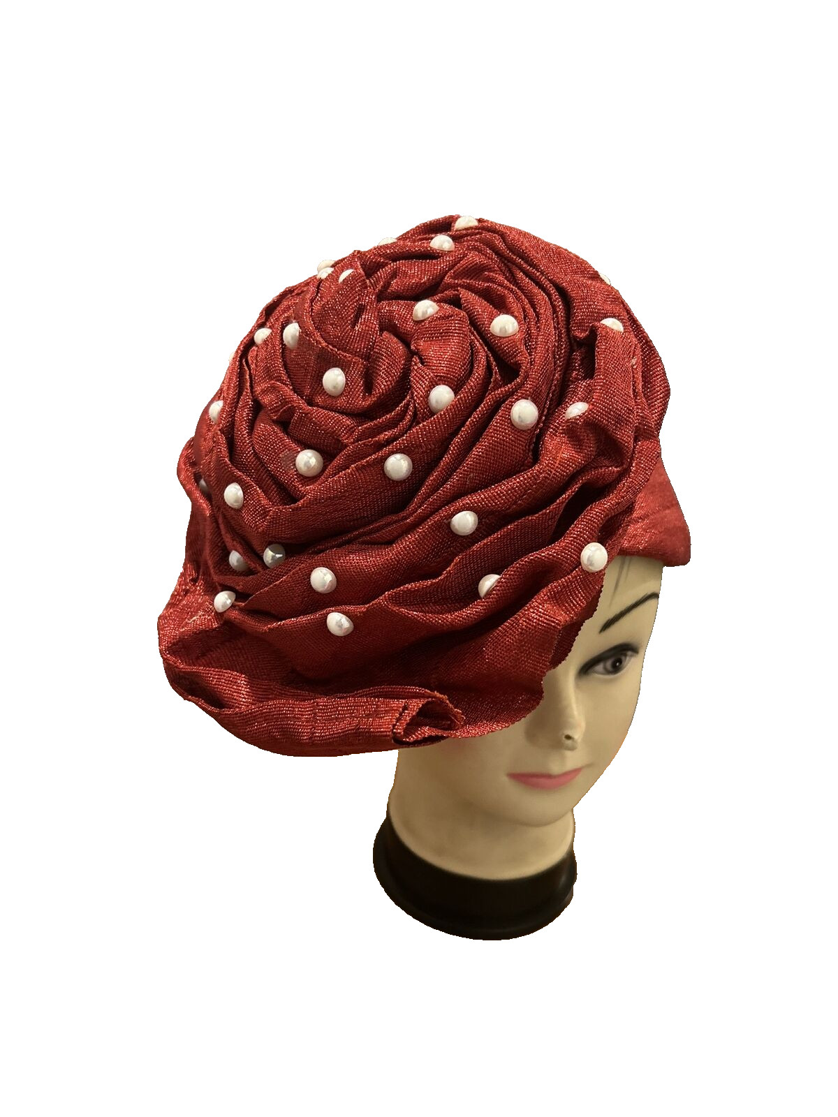 как выглядит Aso-Oke African Headtie Auto Gele, Hot Red Stoned Ready Made Gele Fabric фото