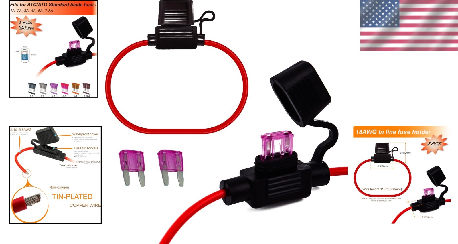 2pcs Waterproof Inline Fuse Holder with 3A Maxi Fuse for Safe Electrical Systems