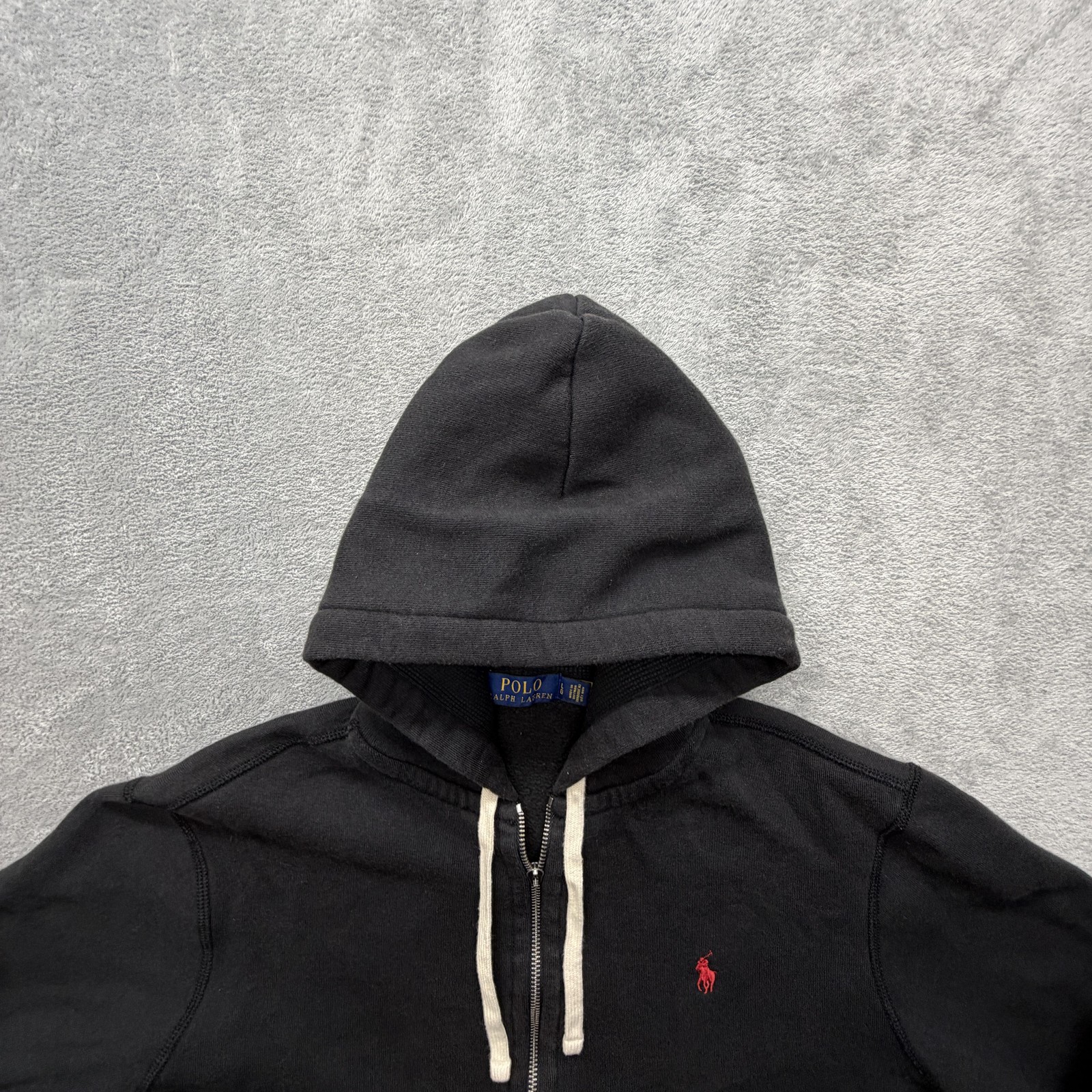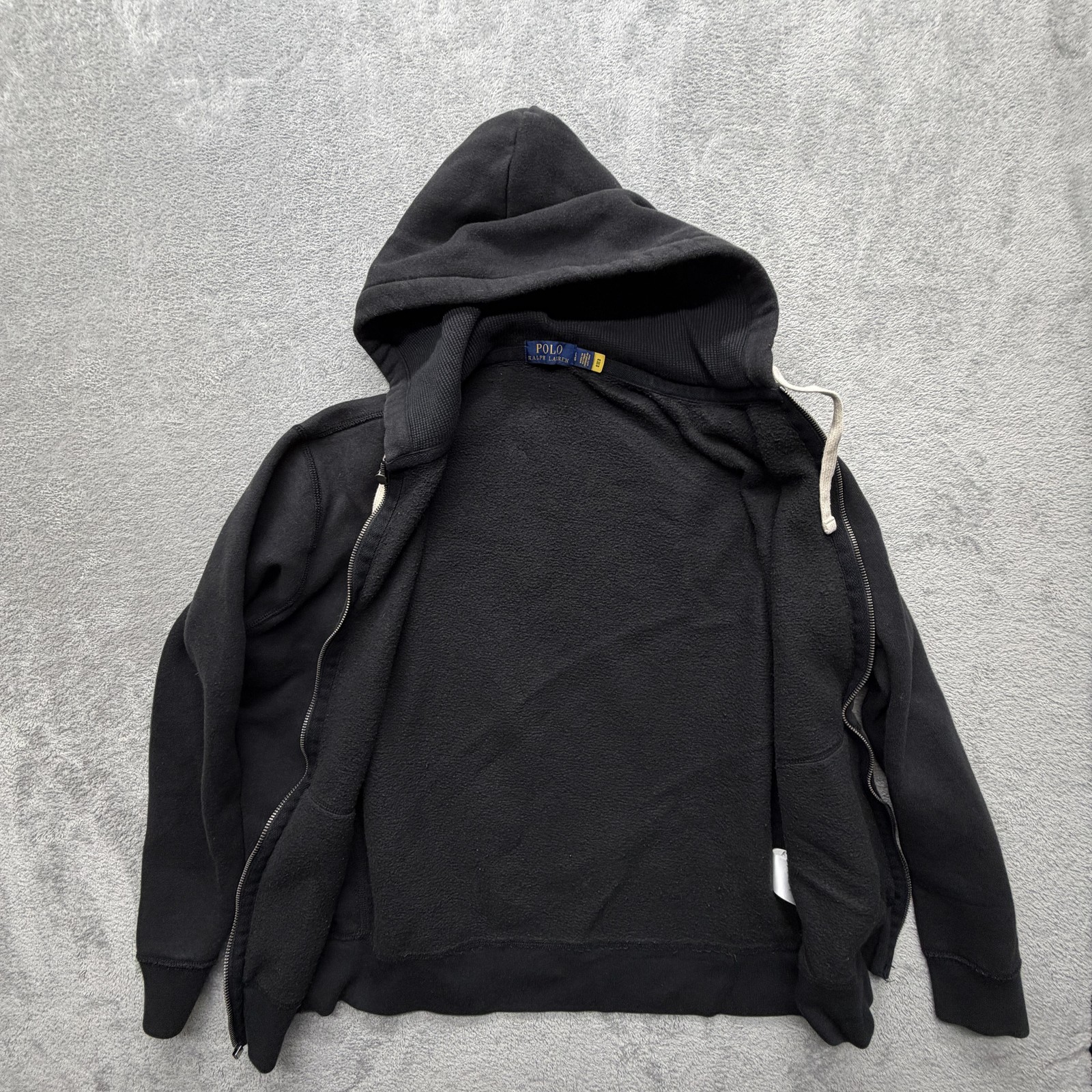 Polo Ralph Lauren Hoodie Mens Large Black Full Zip Fleece Sweatshirt Pony Logo