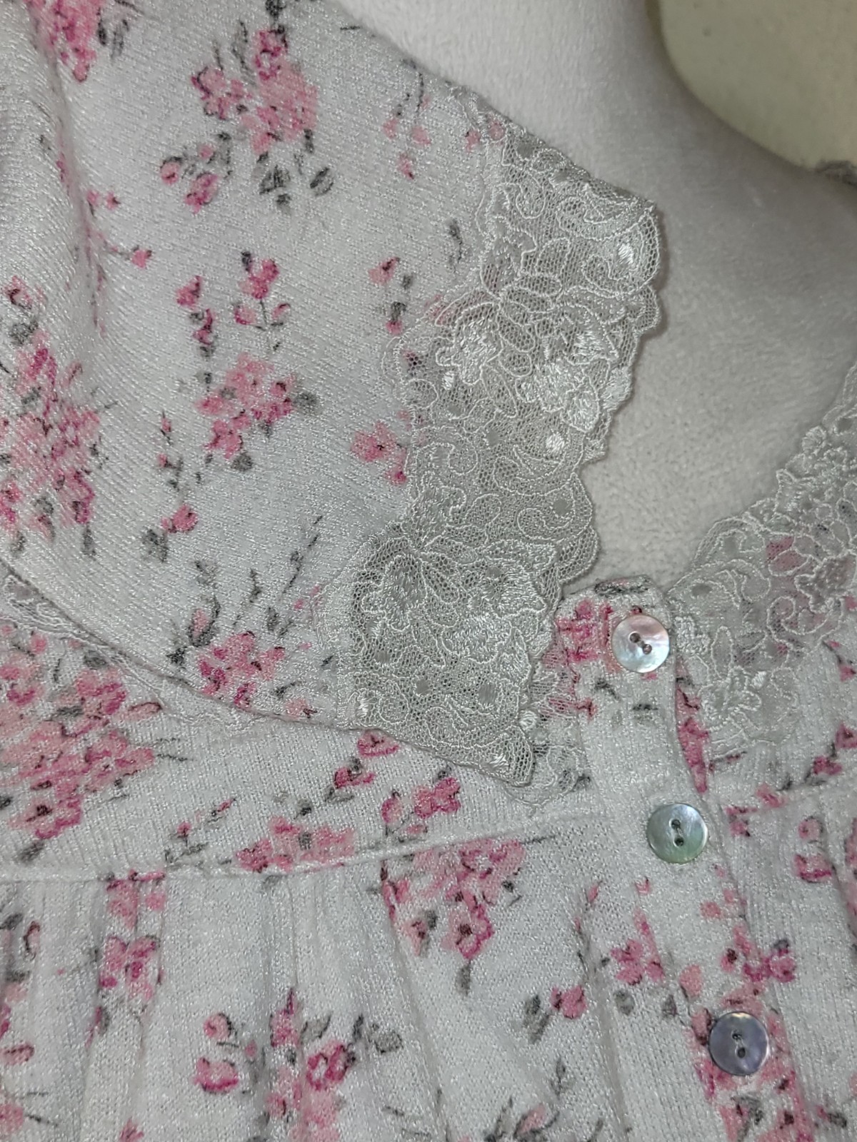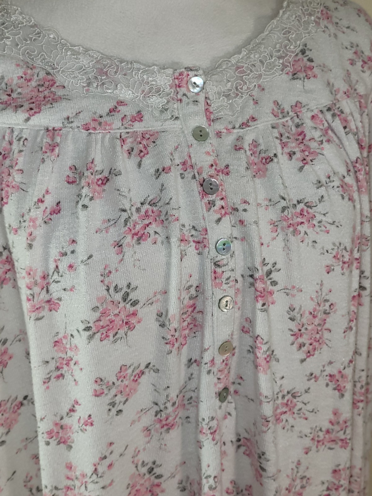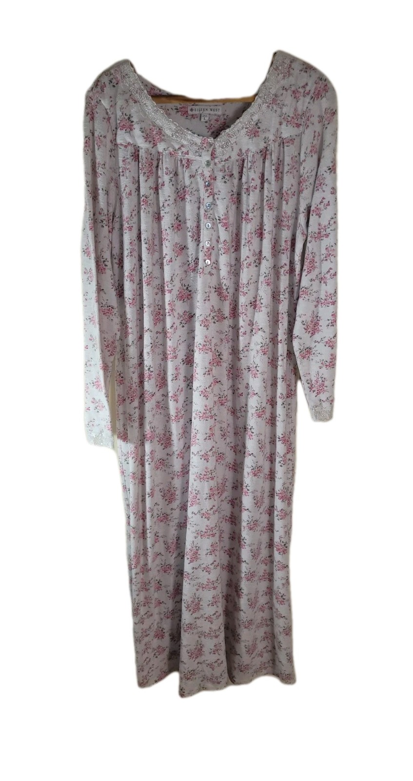 Eileen West Nightgown Floral Light Flannel Sz Large Long Sleeve Cream Pink