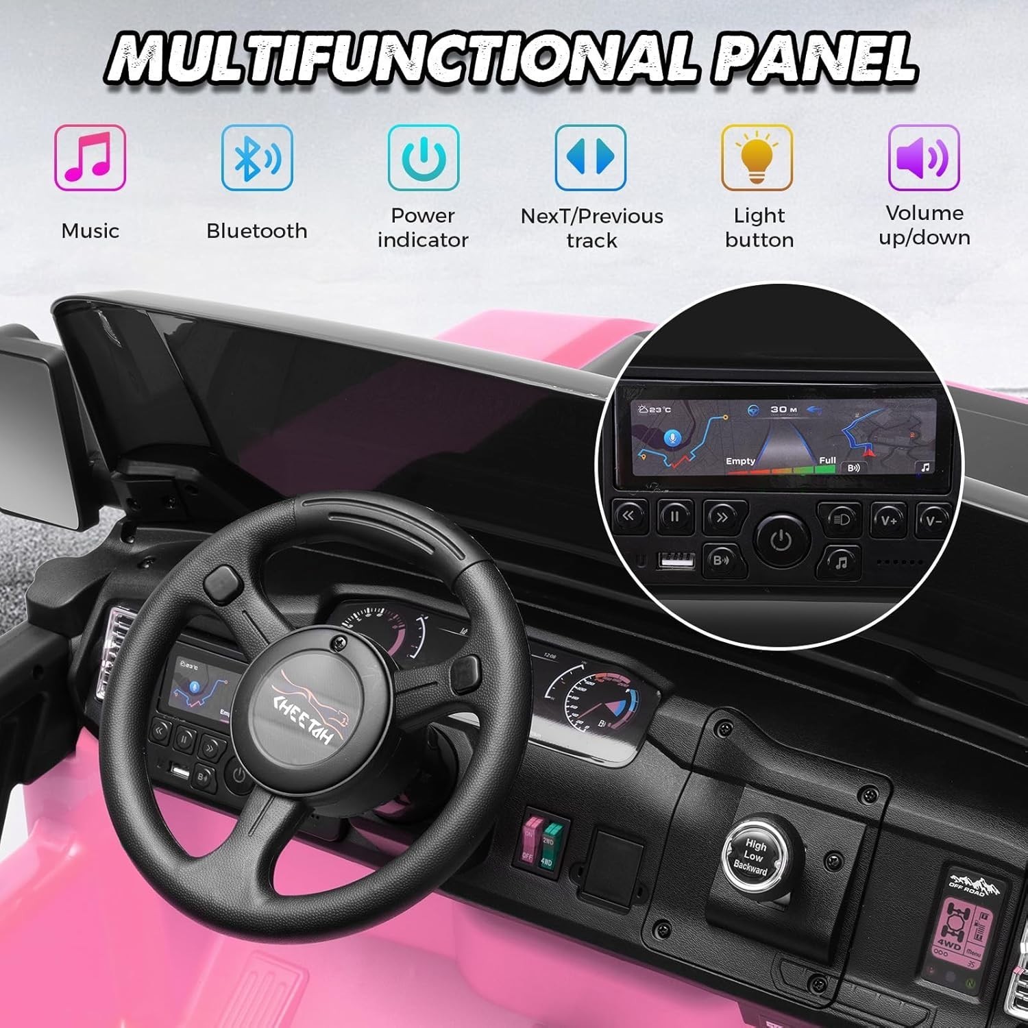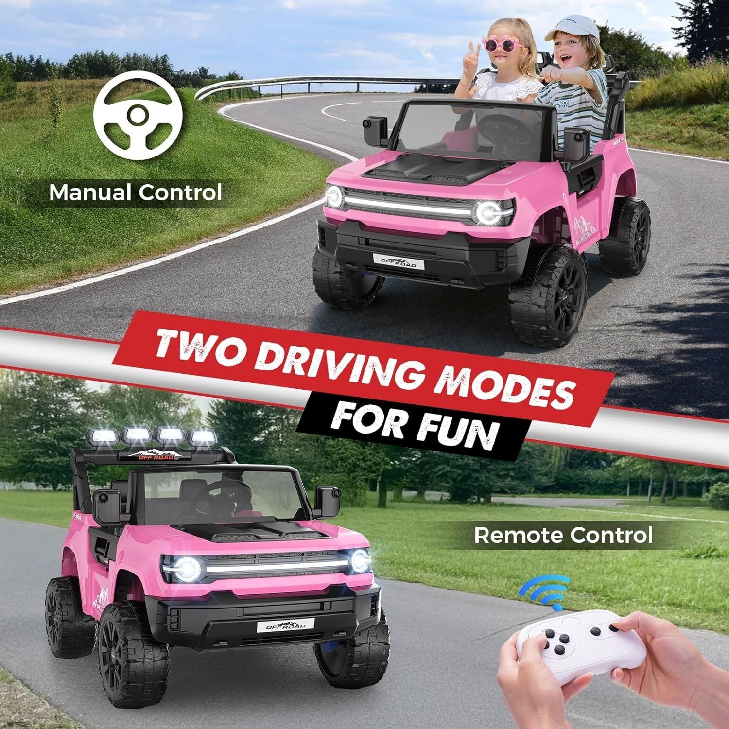 24V Electric Ride on Car for Kids 4x4 Powerful Wheels 4WD/2WD Switchable Music