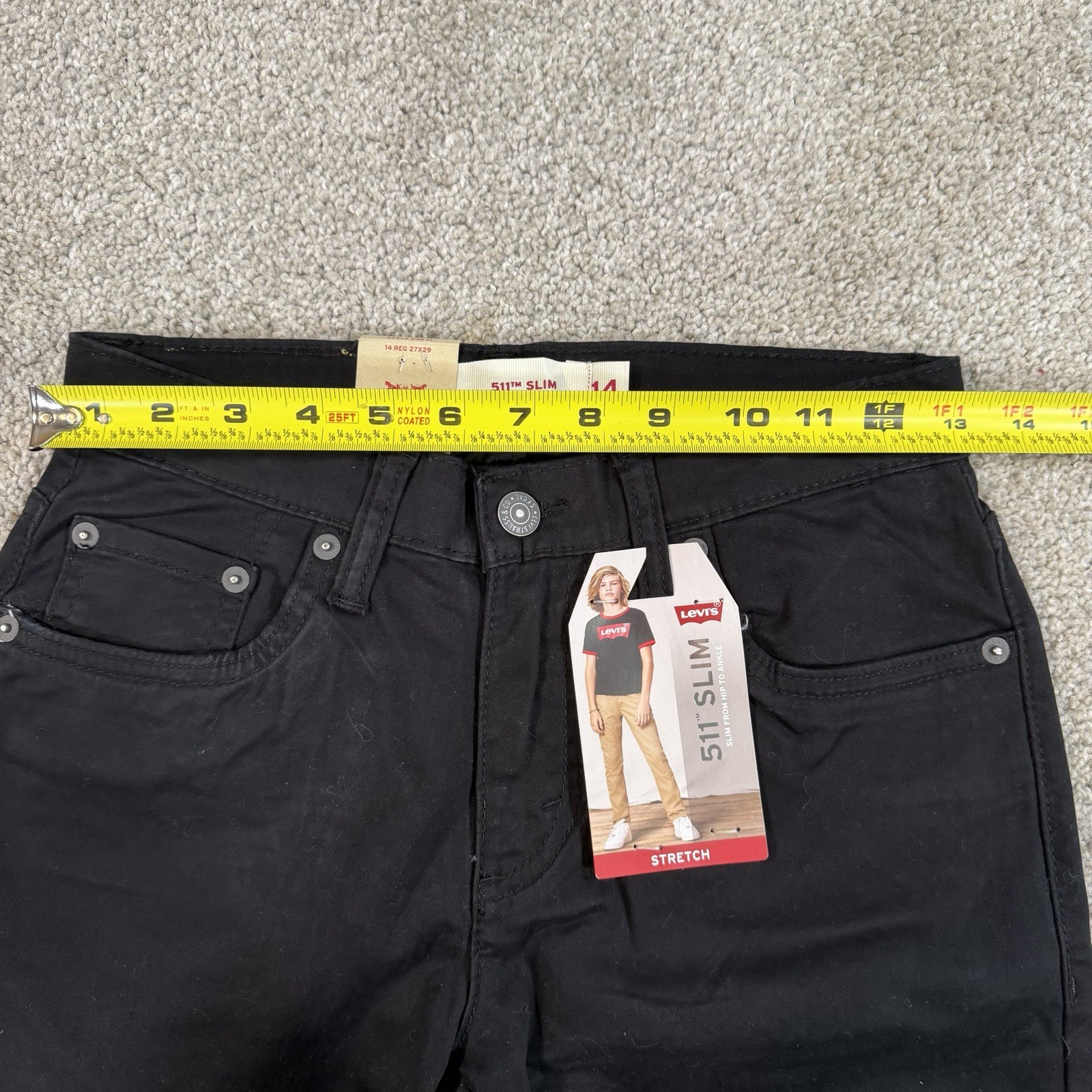 как выглядит Levi s 511 Slim Stretch Black Jeans Youth Size 14 Reg 27x29 Casual Comfort NWT фото