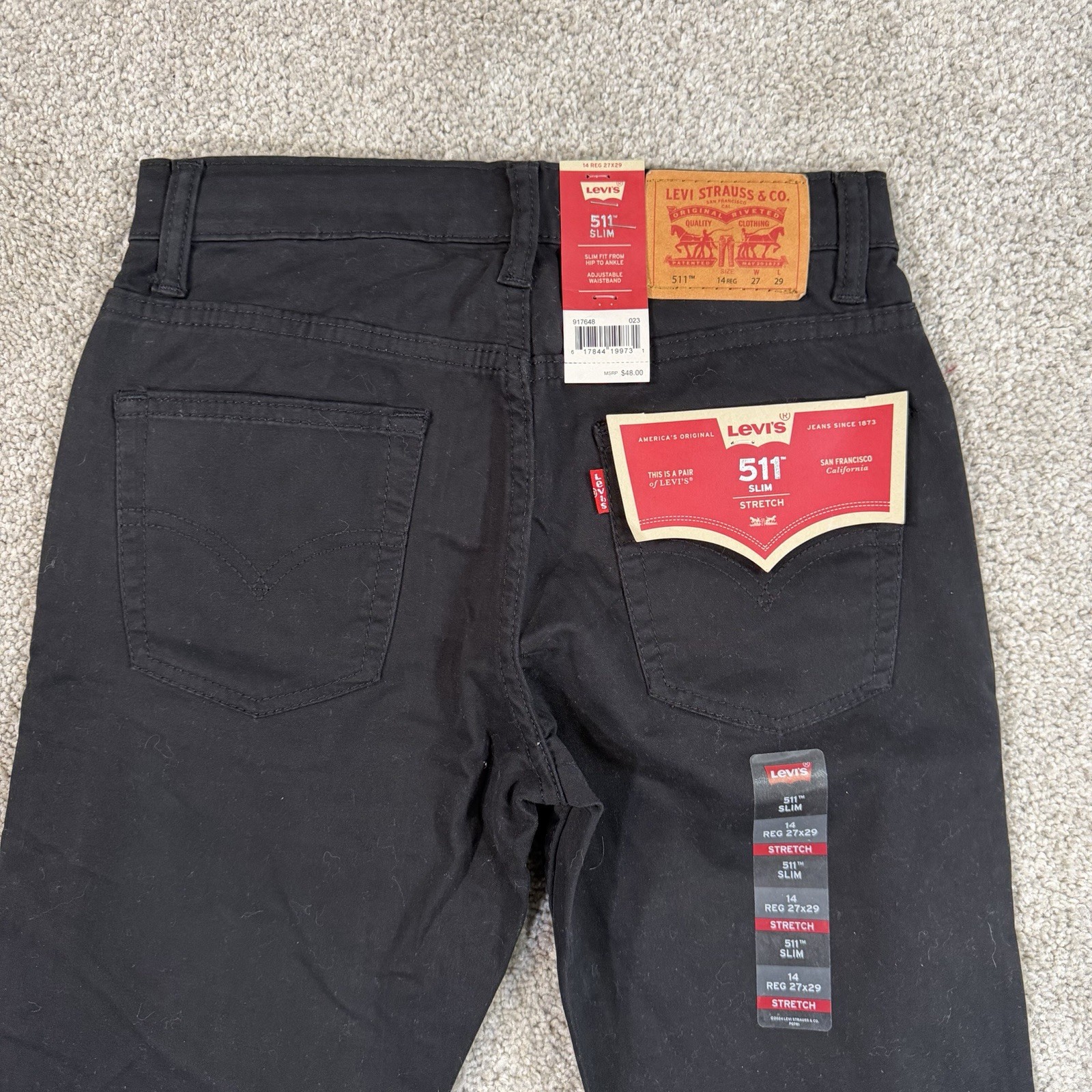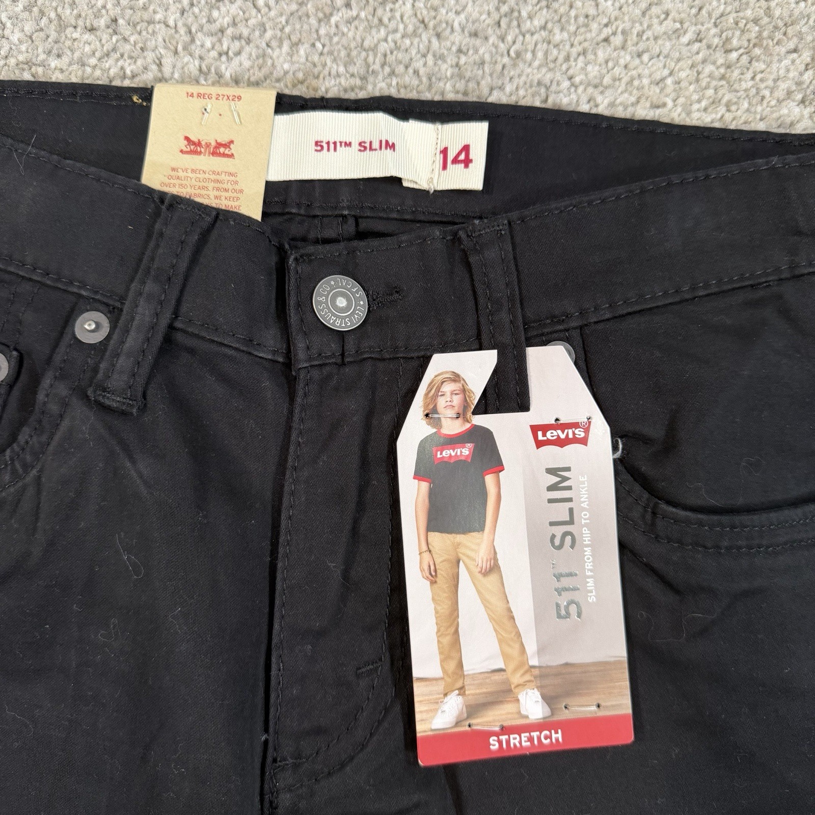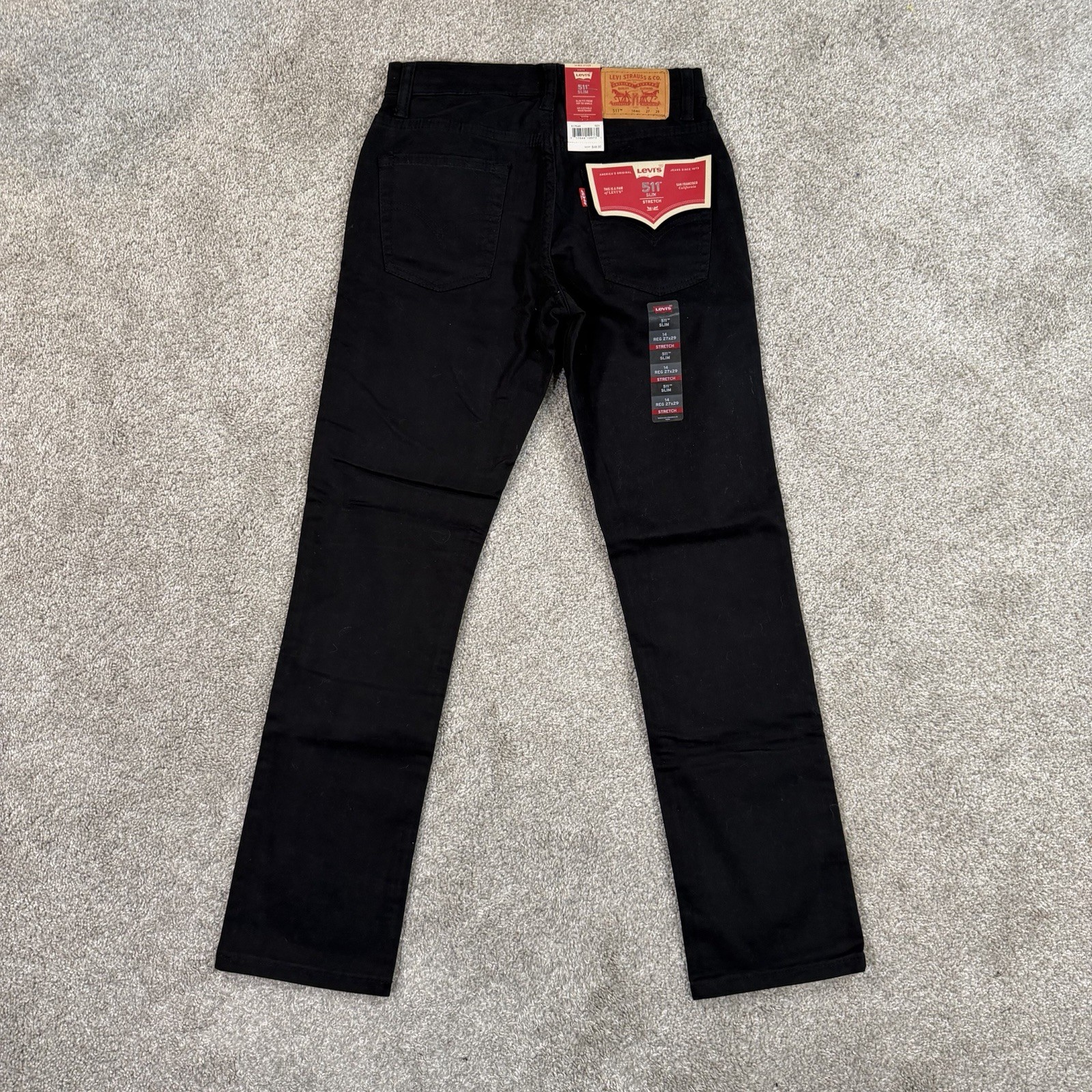 Levi s 511 Slim Stretch Black Jeans Youth Size 14 Reg 27x29 Casual Comfort NWT