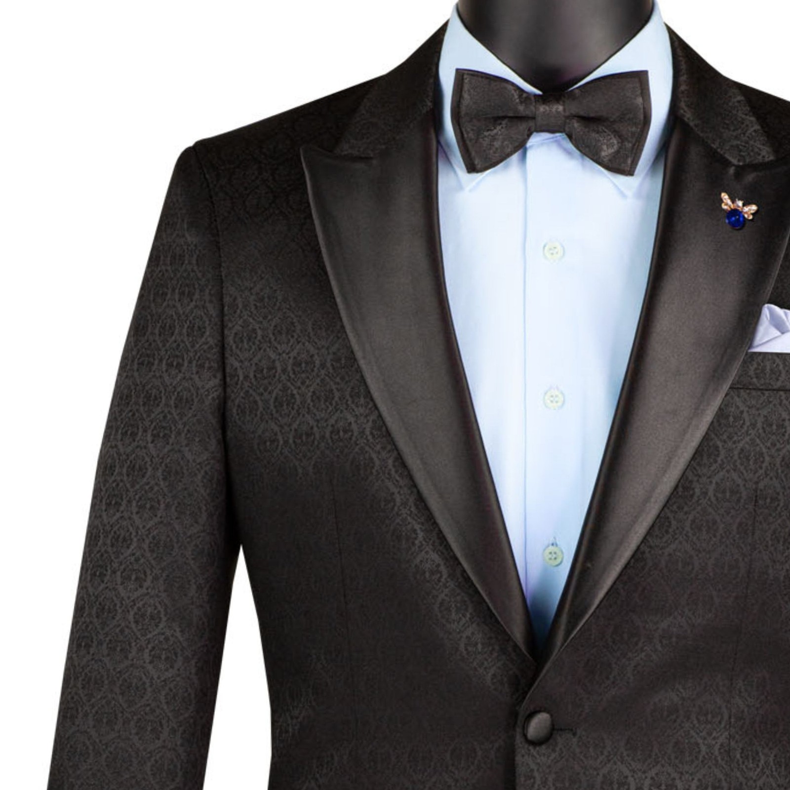 VINCI Men's Black Jacquard Slim Fit Tuxedo Jacket w/ Bow Tie - NEW
