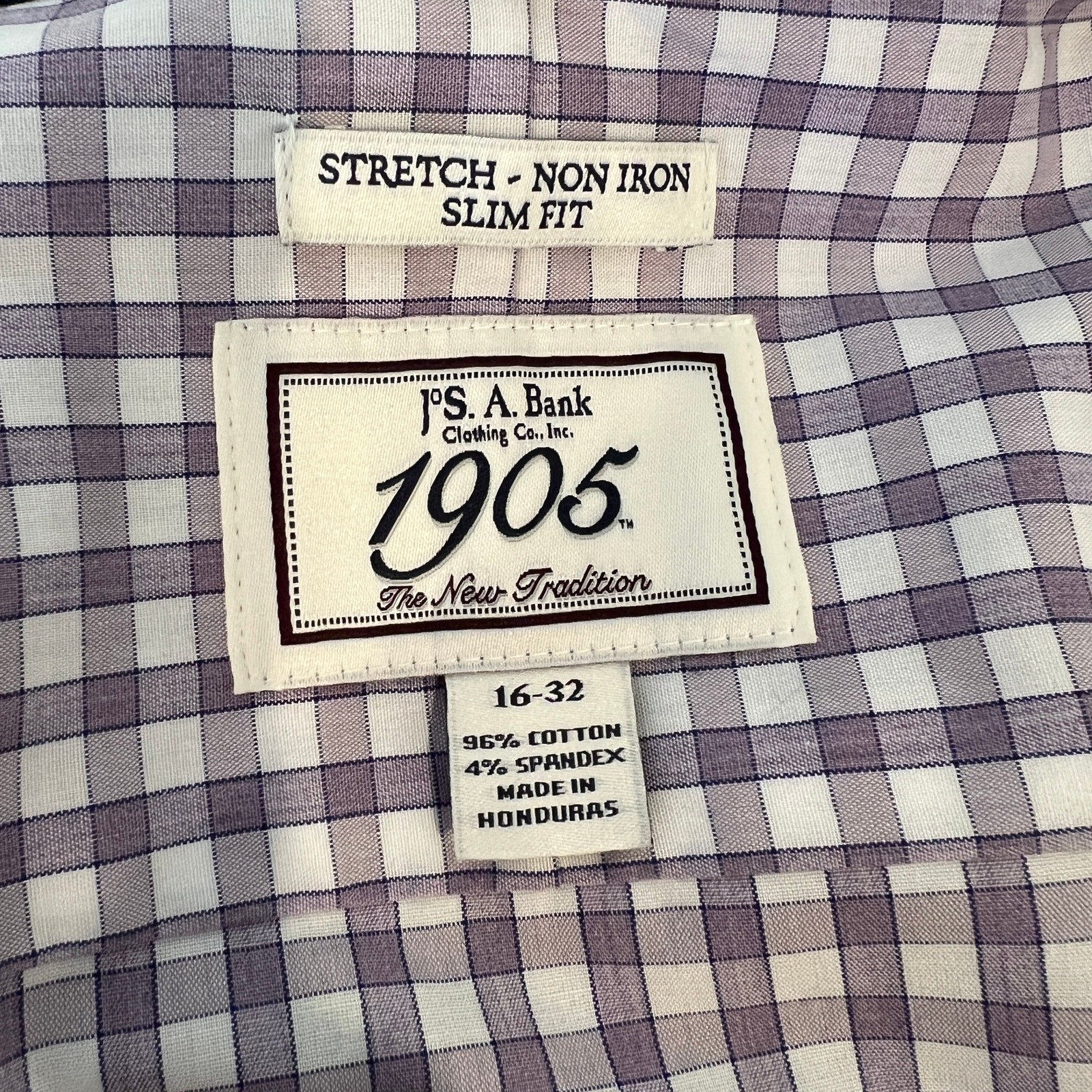 как выглядит Jos. A Bank 1905 Slim Fit Non Iron Dress Shirt Mens 16-32 Stretch Purple Check фото