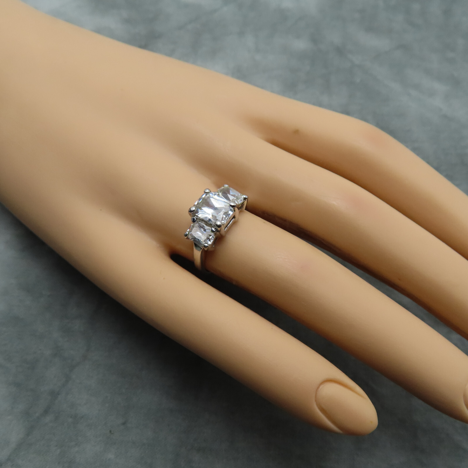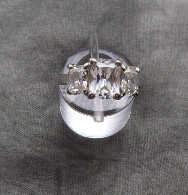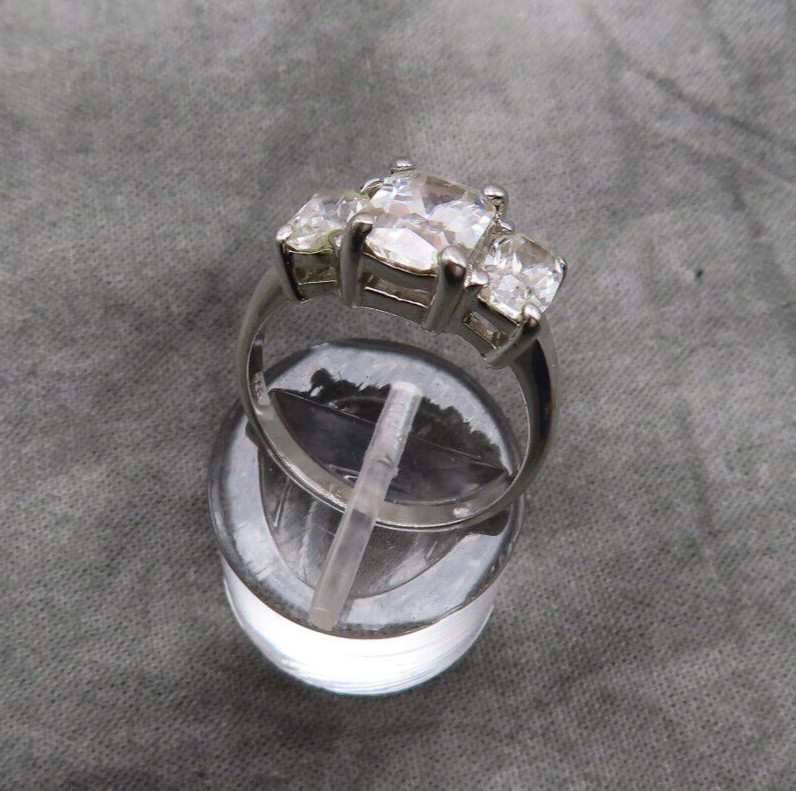 как выглядит Vintage Sterling Silver Ring Cocktail Clear Faceted Crystal Sz 6 Solataire 920c фото