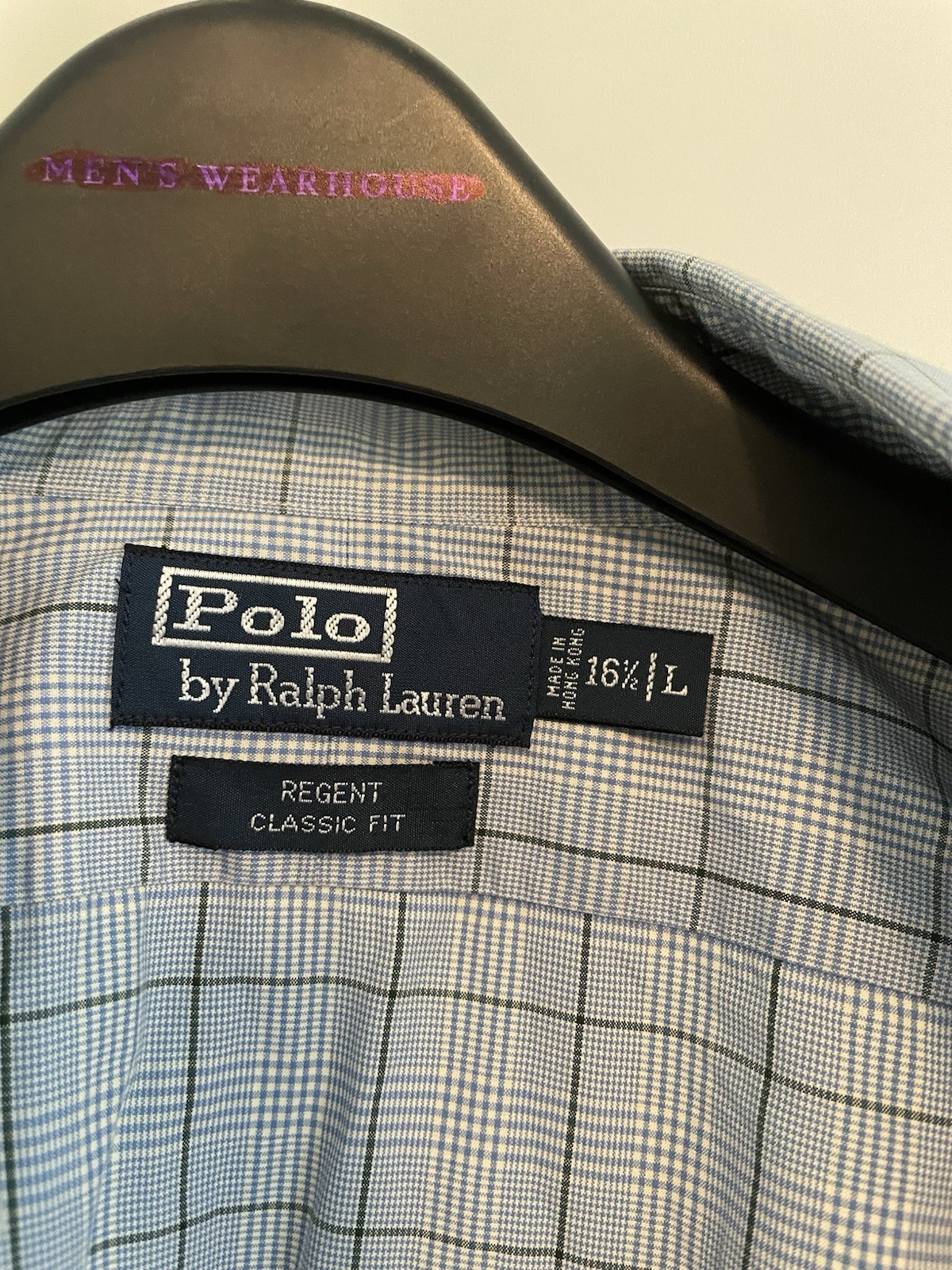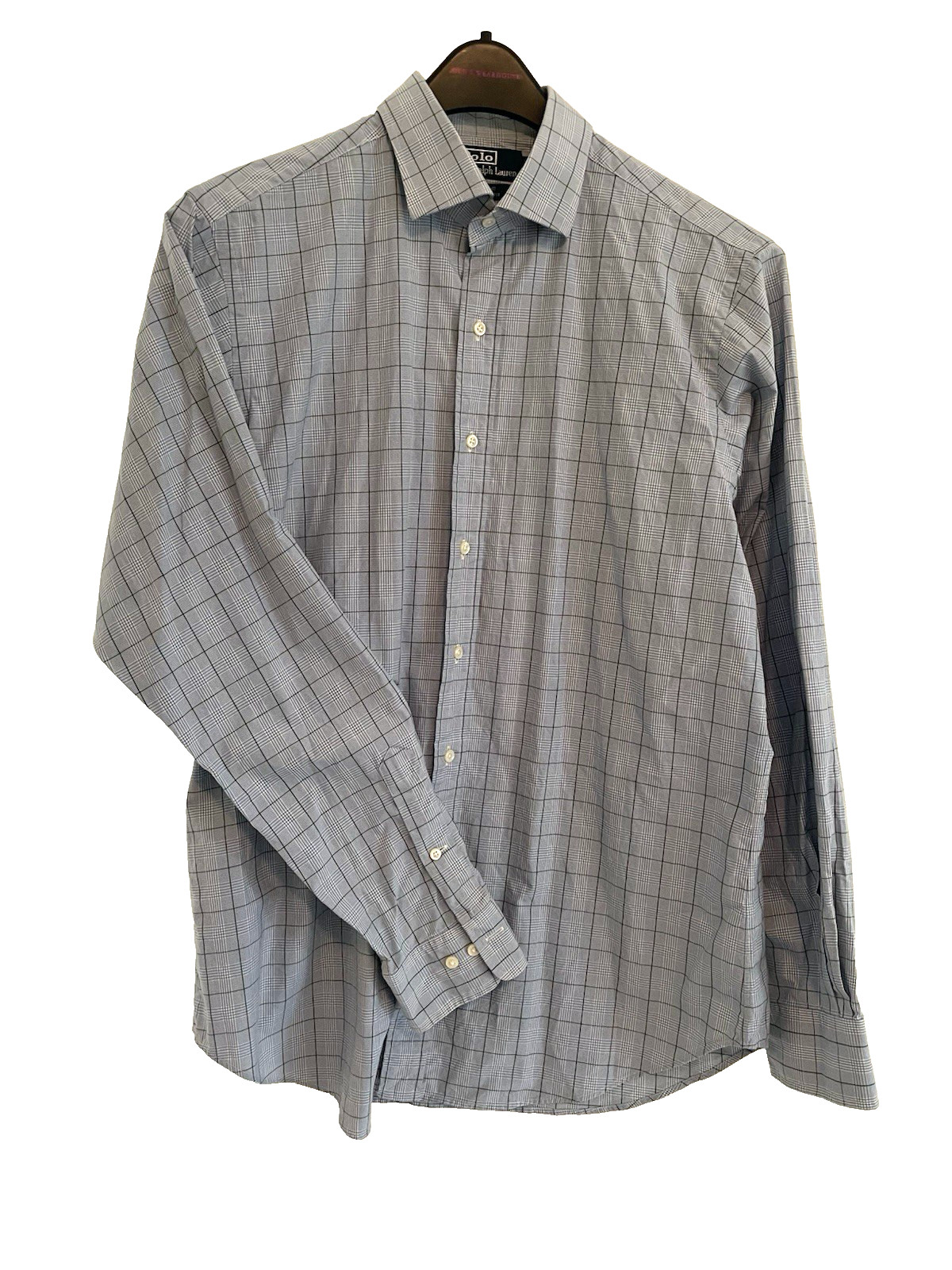 Polo Ralph Lauren Regent Classic Fit Blue Gray Long Sleeve Plaid Shirt 16.5 L
