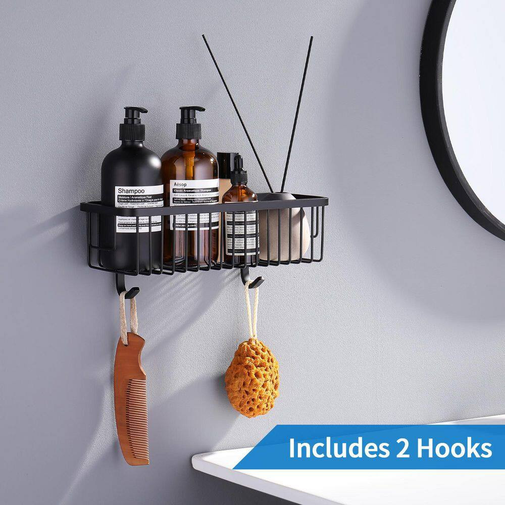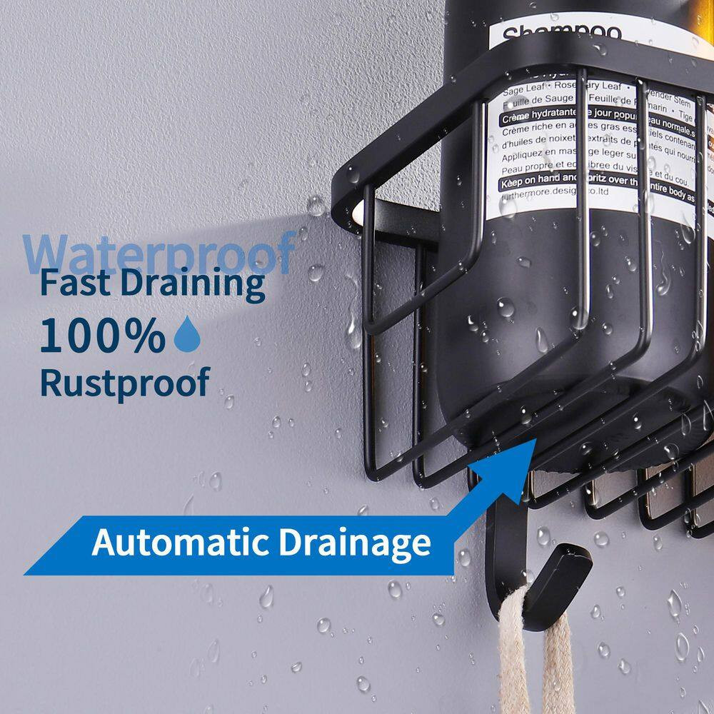 Wall Mounted Corner Shower Caddy Shower Basket in Stainless Steel Matte Black