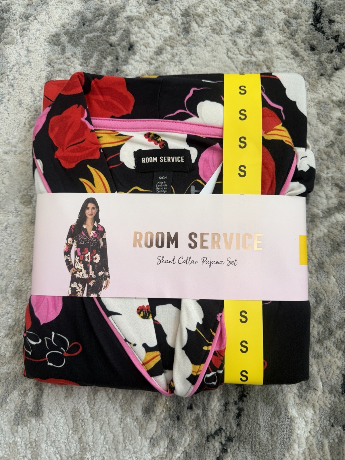 Room Service NEW Floral Women's Pajama Set Shawl Collar Size S
