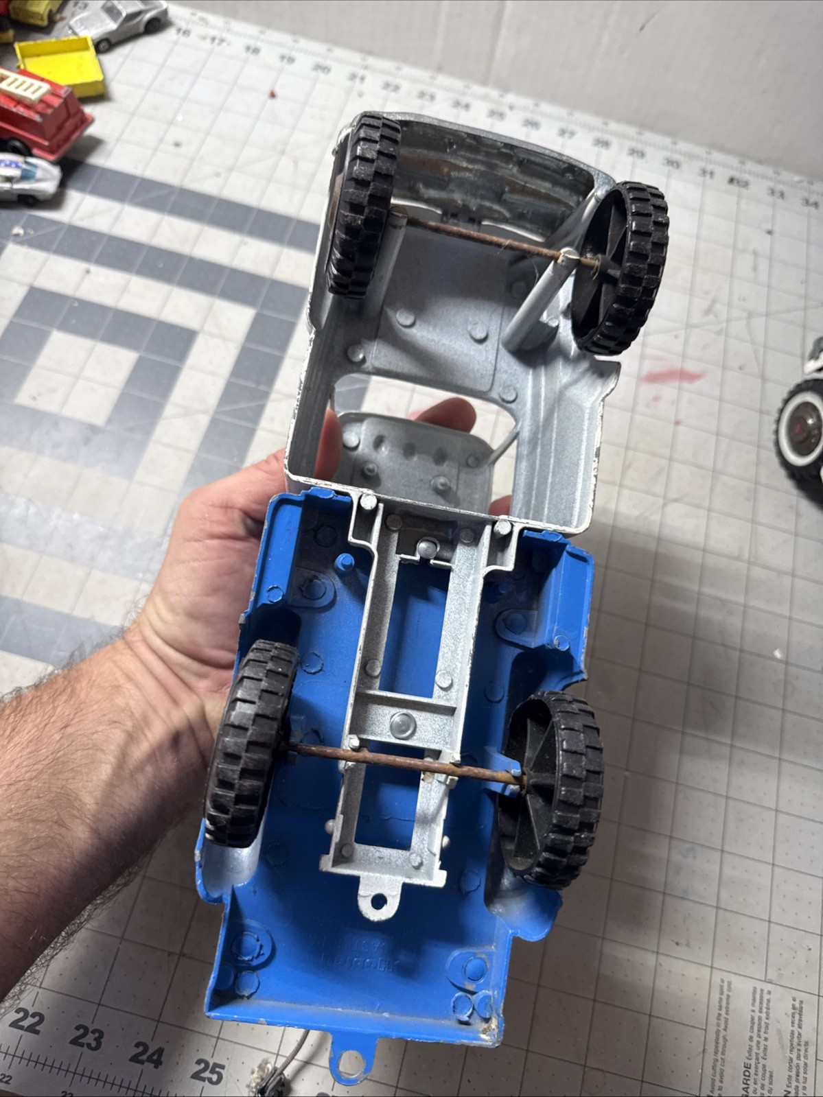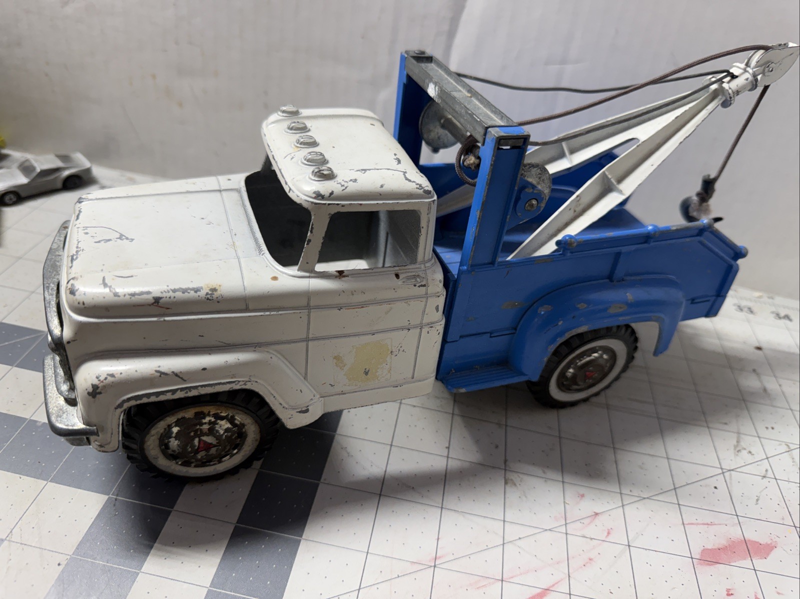 Hubley Mighty Metal Tow Truck 1960s series 800, Blue/ white With Hook Cord Etc