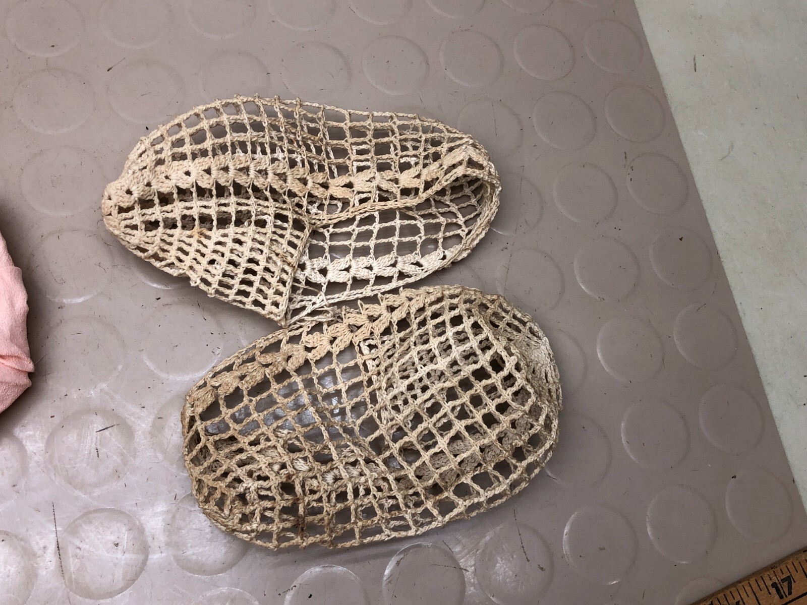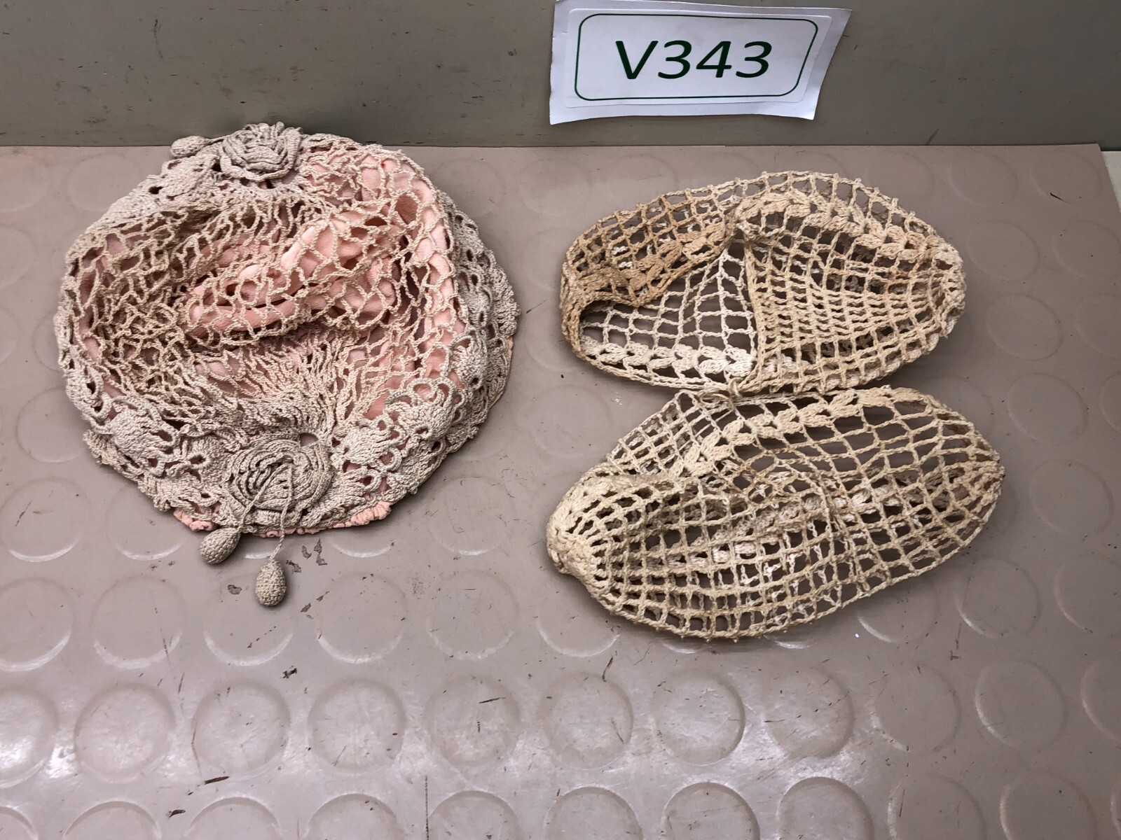 как выглядит Vintage Baptism Christening Crocheted Childs Girls Hat and Booties Z фото