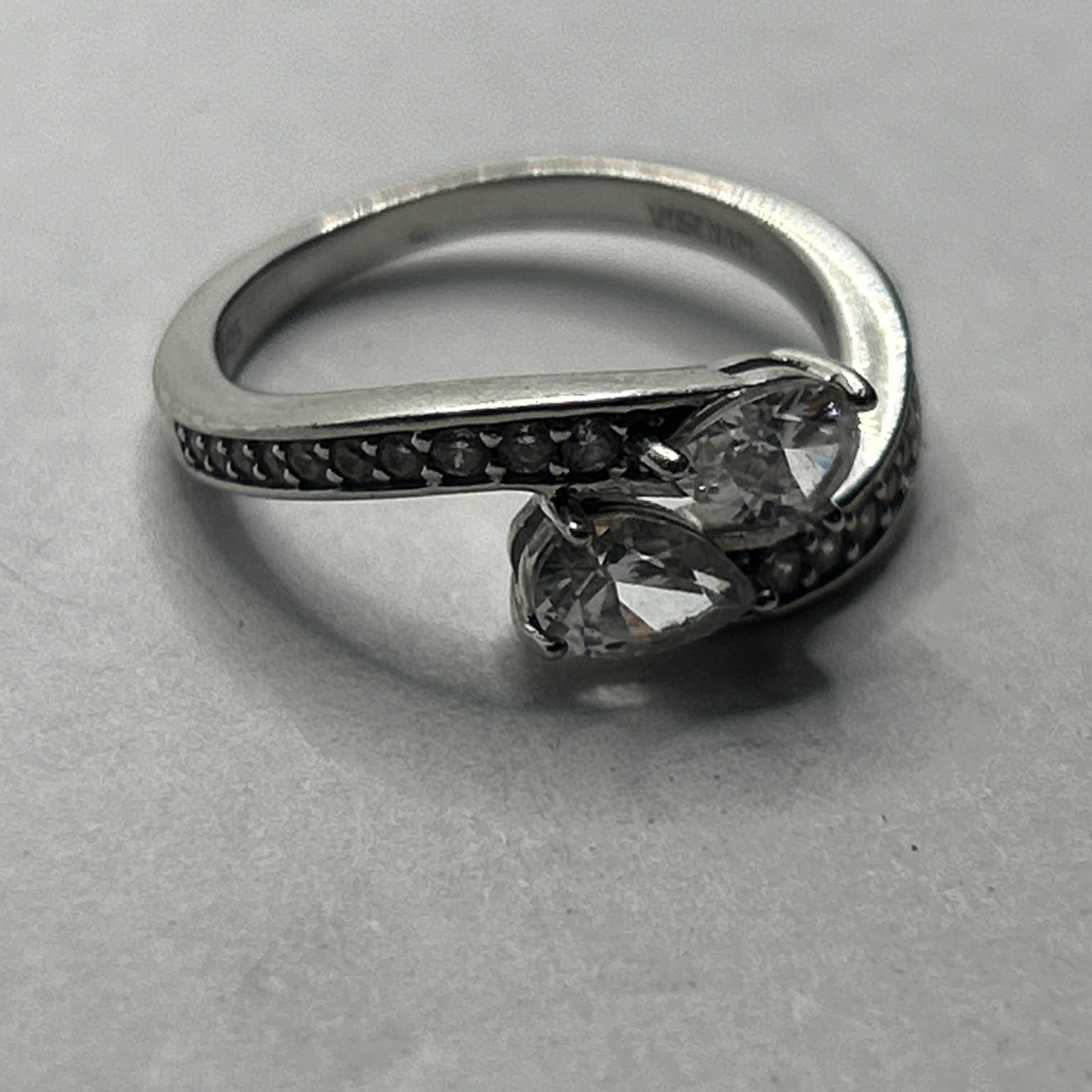 как выглядит Sterling Silver Pear shaped CZ 3-Stone Ring 6, 925 фото