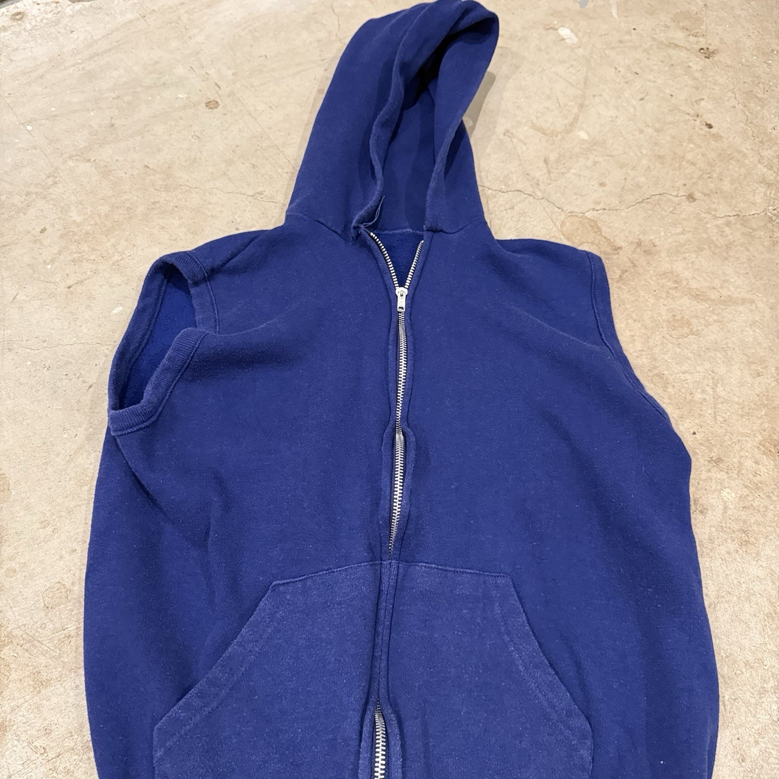 как выглядит Vintage 80s Sleeveless Zip Up Hoodie Mens S/M Blue Grunge Vm фото