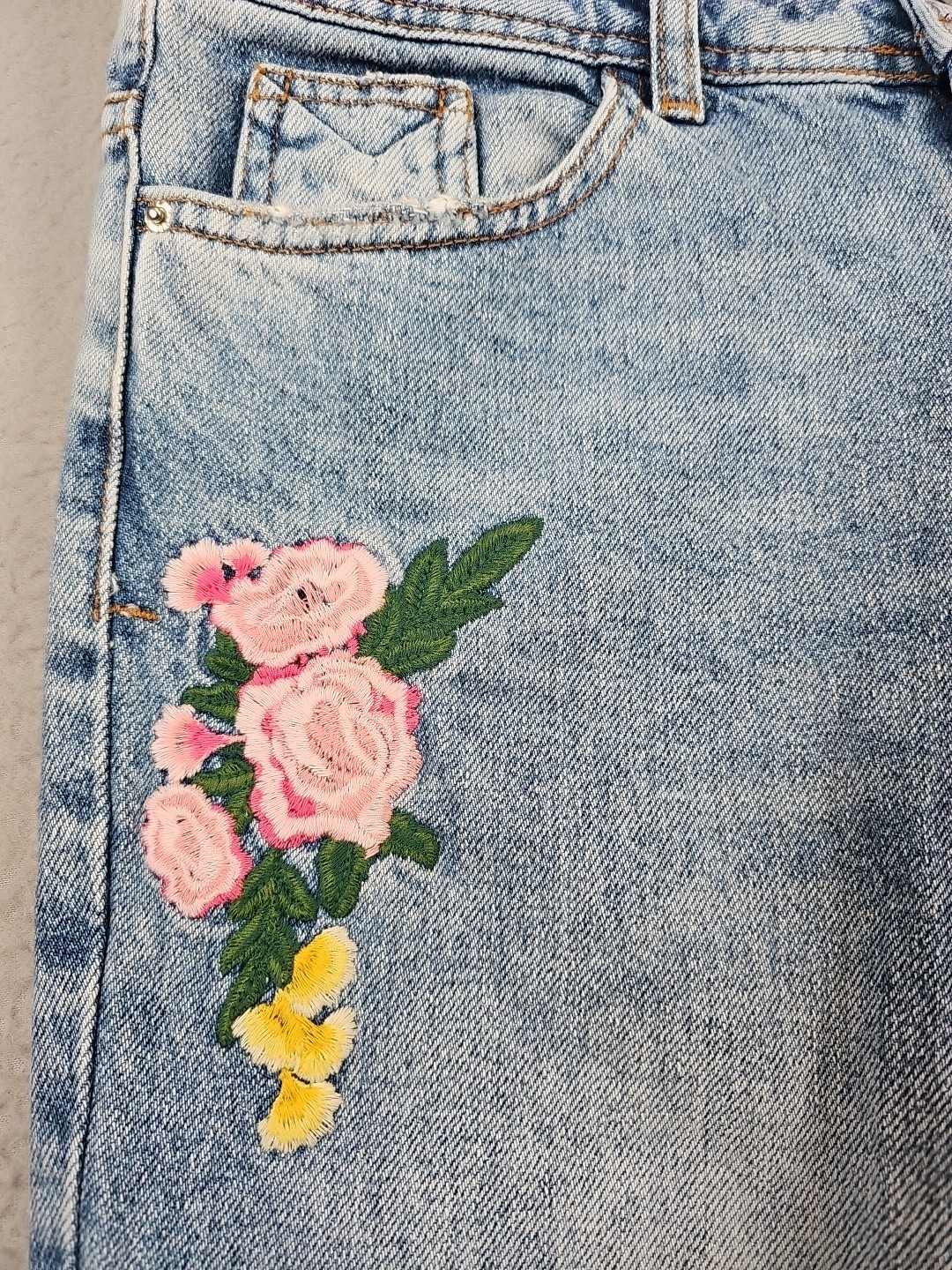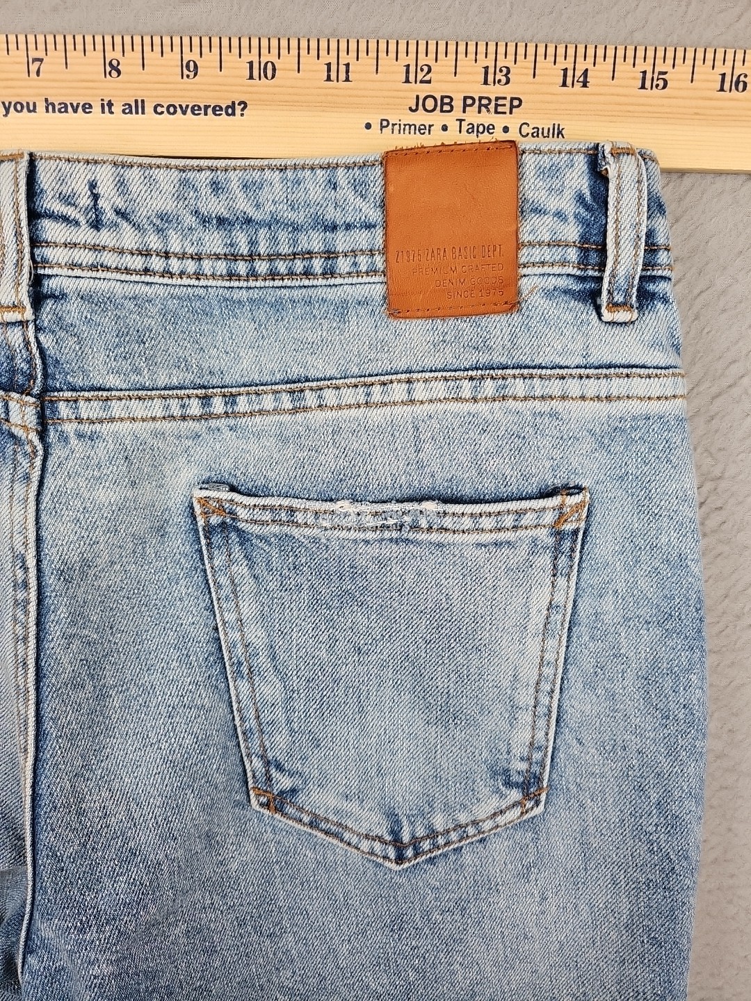 Zara Basic Denim 1975 Floral Embroidered Distressed Jeans Women's Size 6 30x29