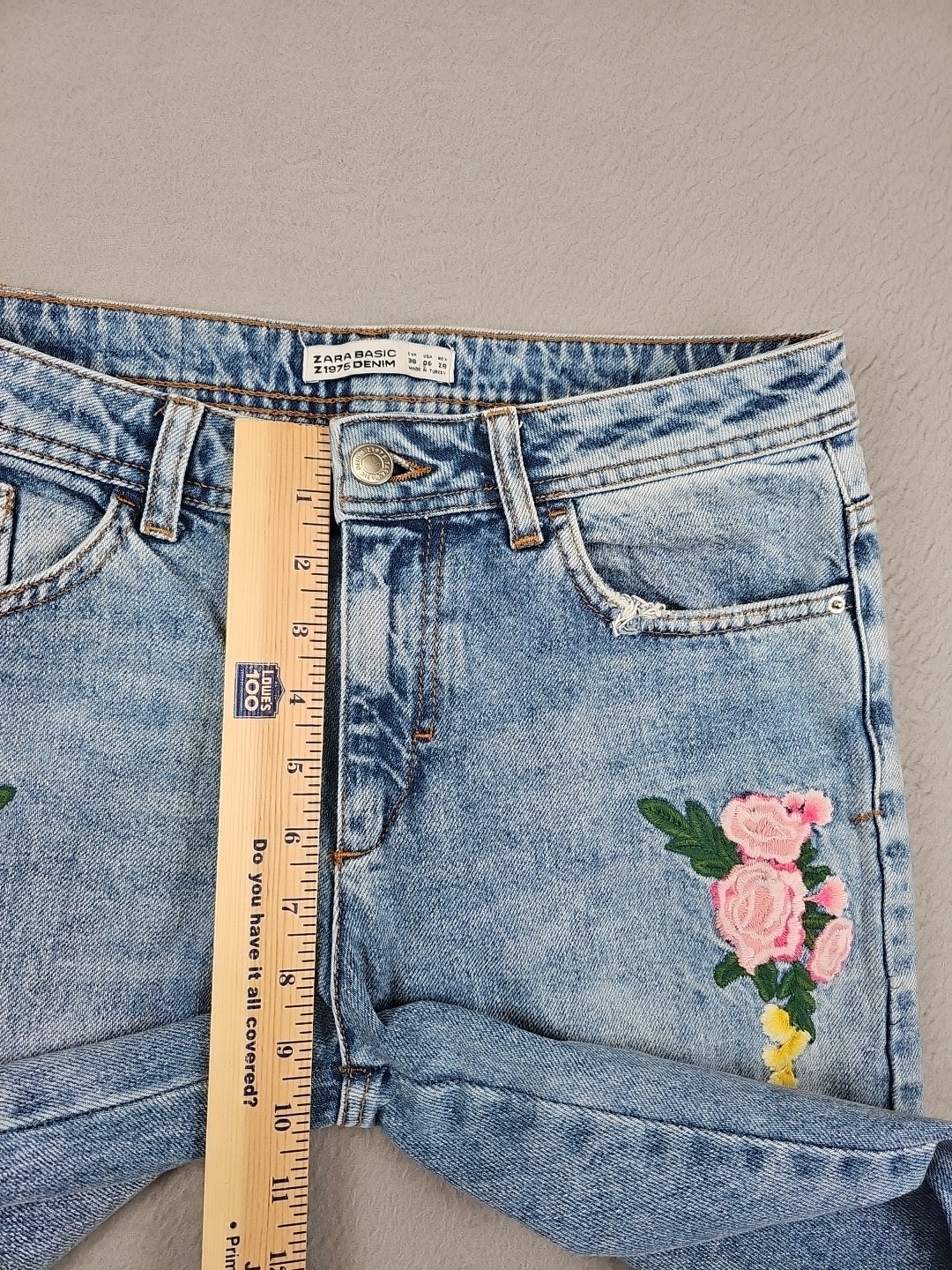 как выглядит Zara Basic Denim 1975 Floral Embroidered Distressed Jeans Womens Size 6 30x29 фото