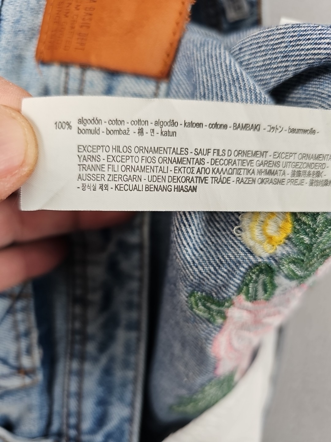 как выглядит Zara Basic Denim 1975 Floral Embroidered Distressed Jeans Women