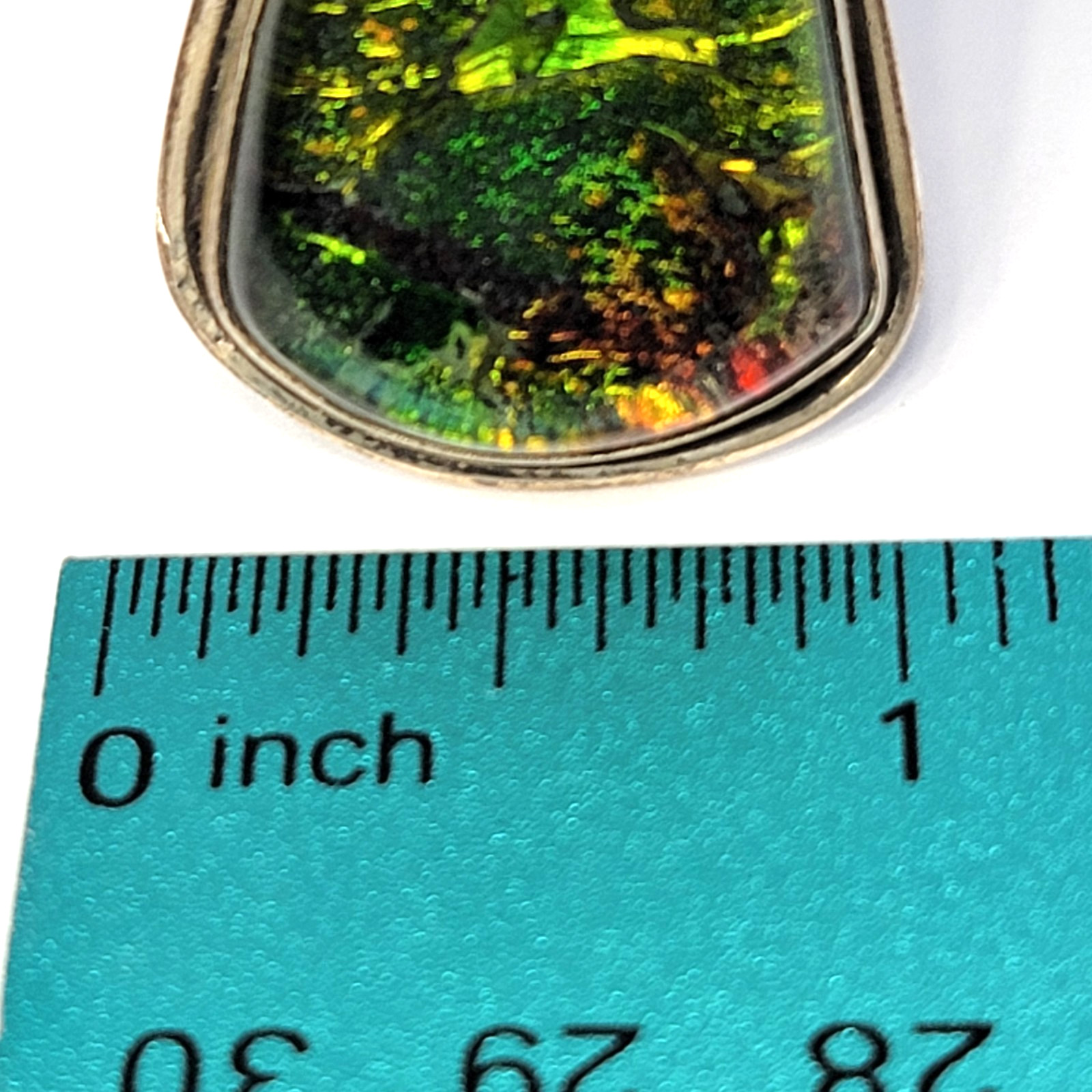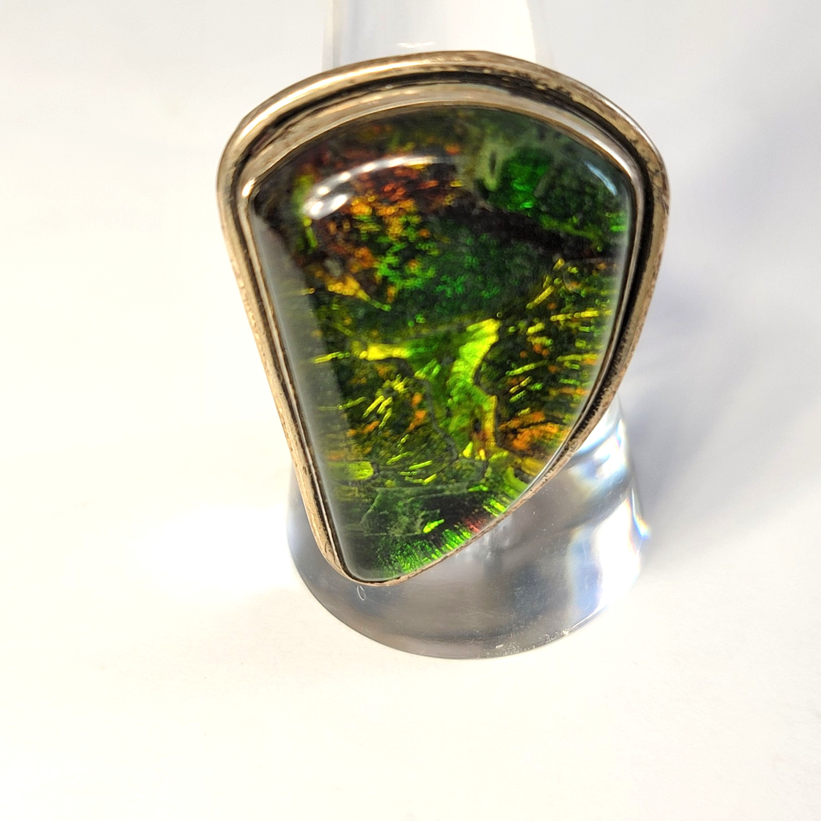 как выглядит Vintage Green Dichroic Art Glass Ring Silver 925 Size 8 Hand-Made Freeform фото