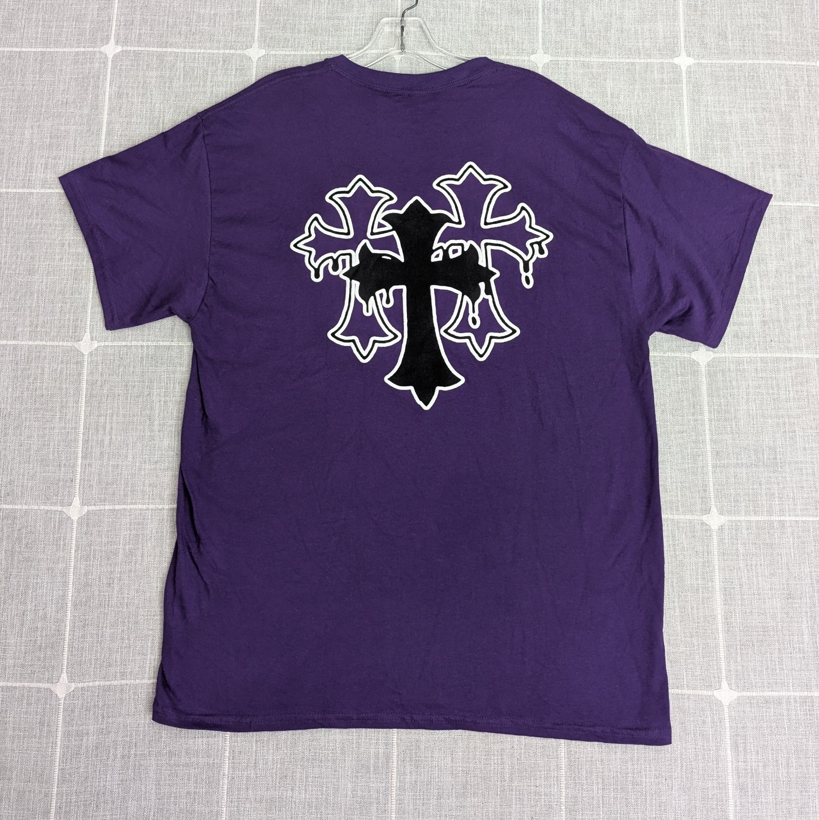 Popular Poison Mens Large Purple Graphic Tee Forever Blessed Cross Retro Y2K