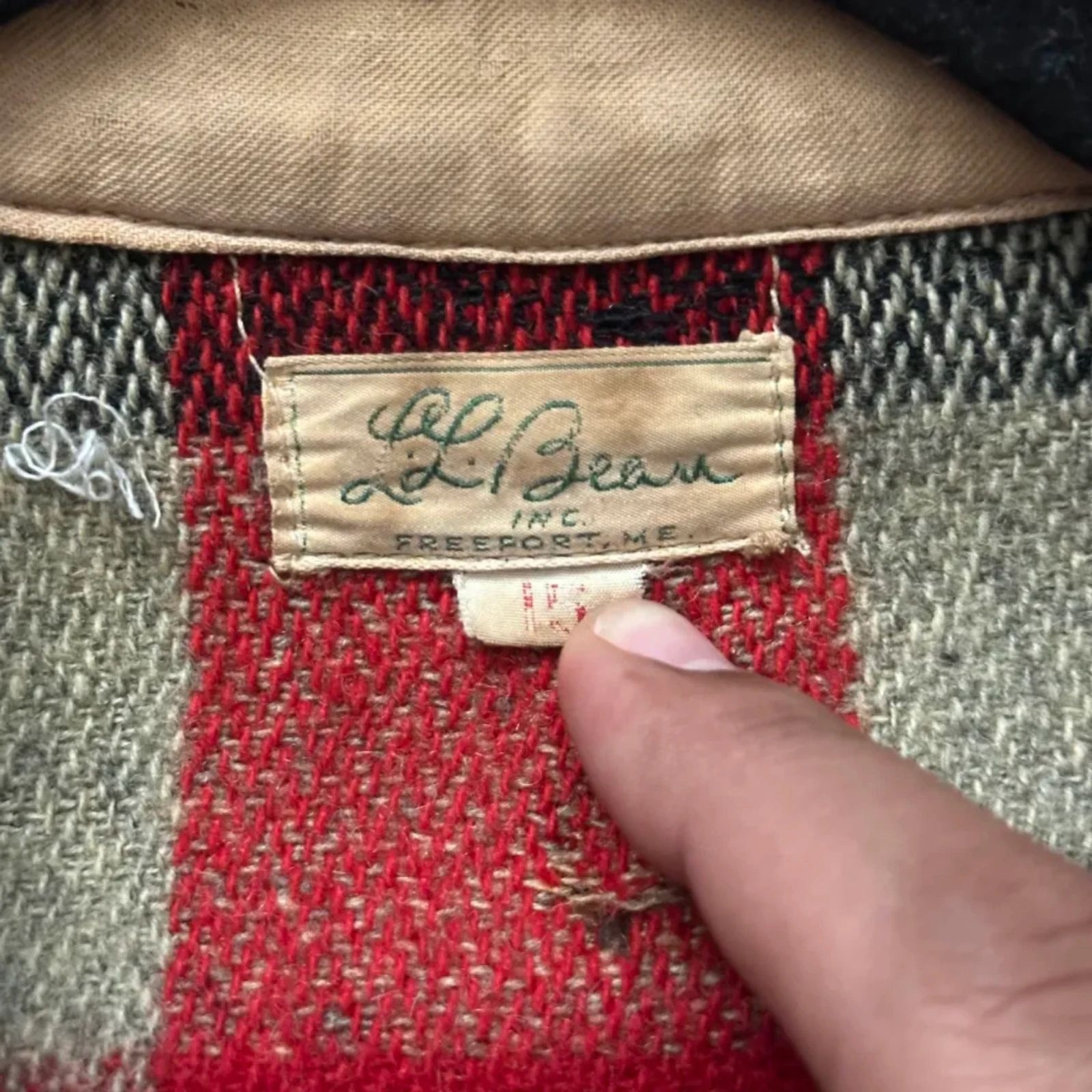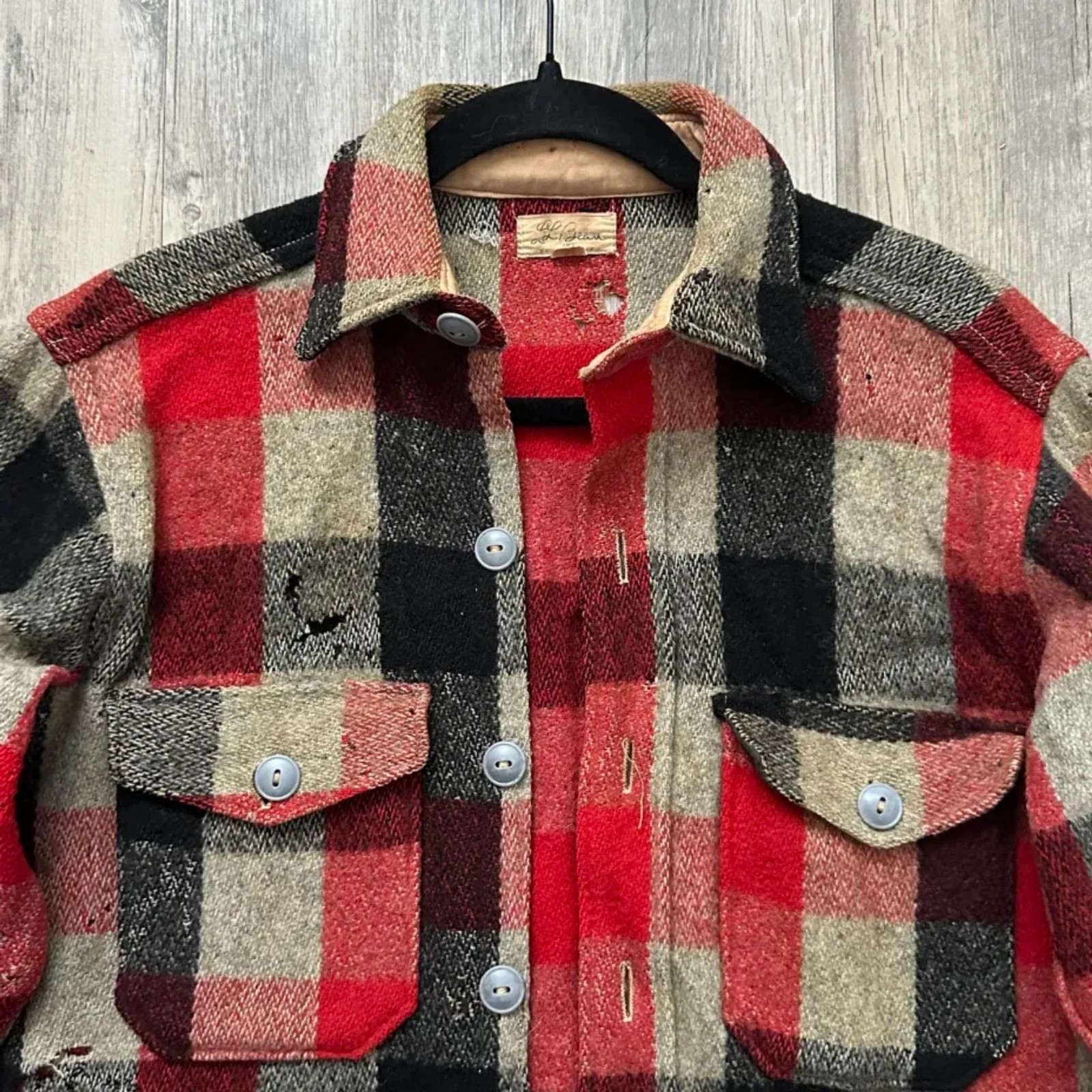 как выглядит Vintage 50s L.L. Bean Wool Buffalo Flannel Button Shirt Size 15 Distressed фото