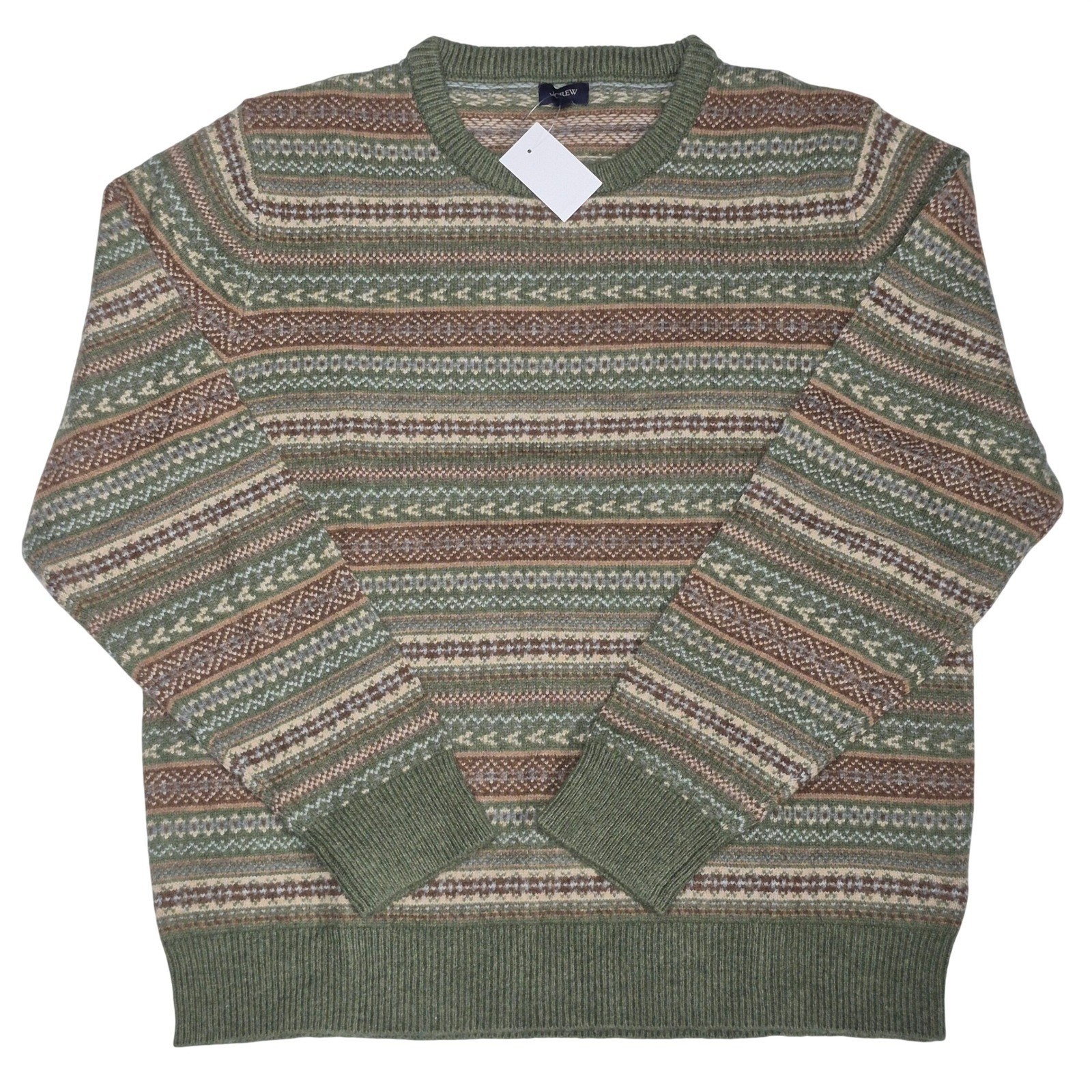 Fair Isle J Crew Sweater Supersoft lambswool-blend Knit Olive Rust Men's Size M