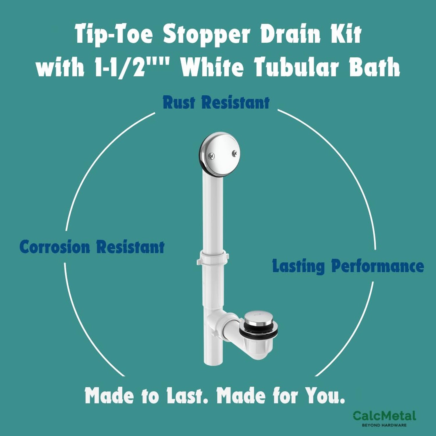 1-1/2 White Tubular Bath Drain Kit with Tip-Toe Bath Drain Stopper, Touch-T...
