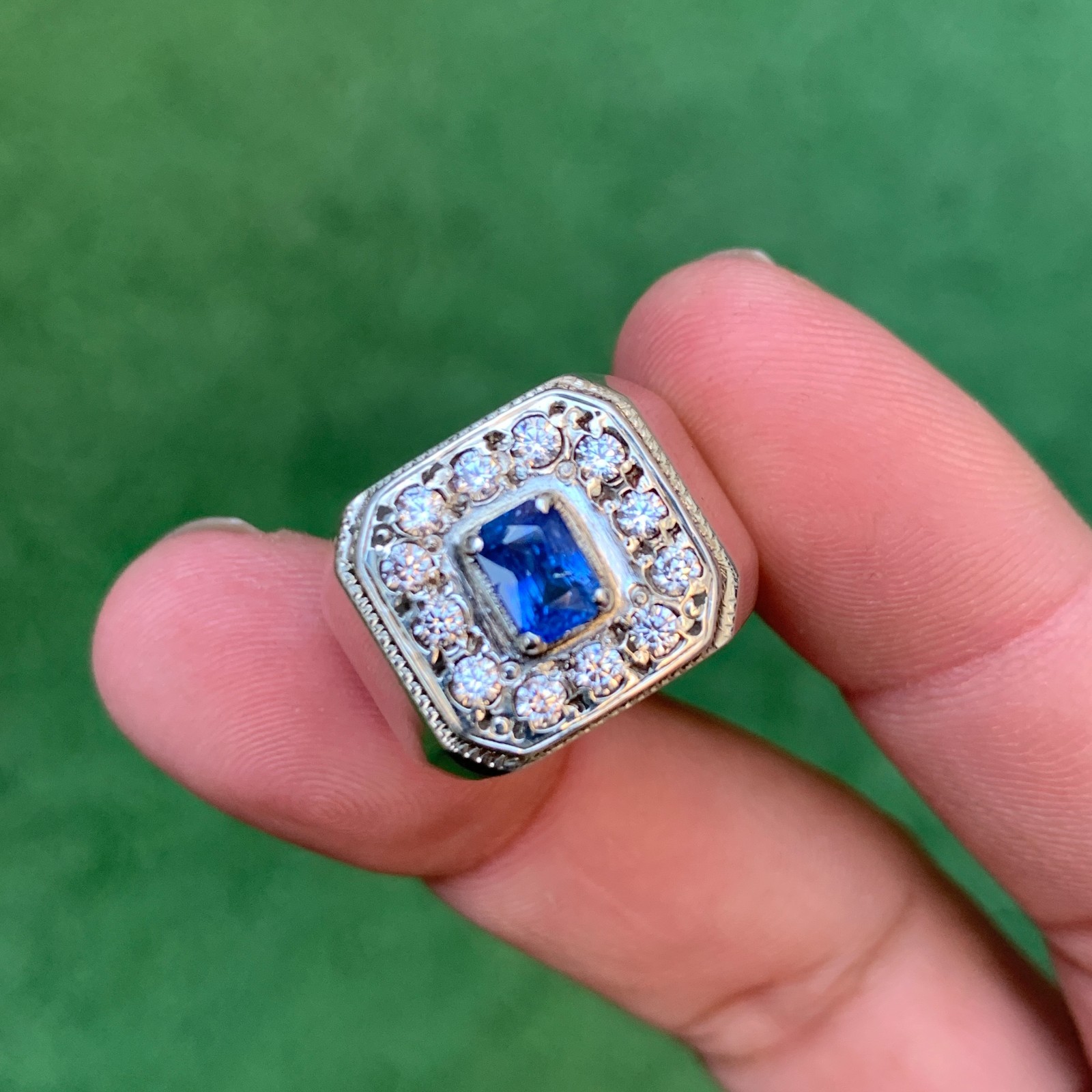 как выглядит Natural 1.20 Ct Blue Sapphire In Handmade Silver Ring фото