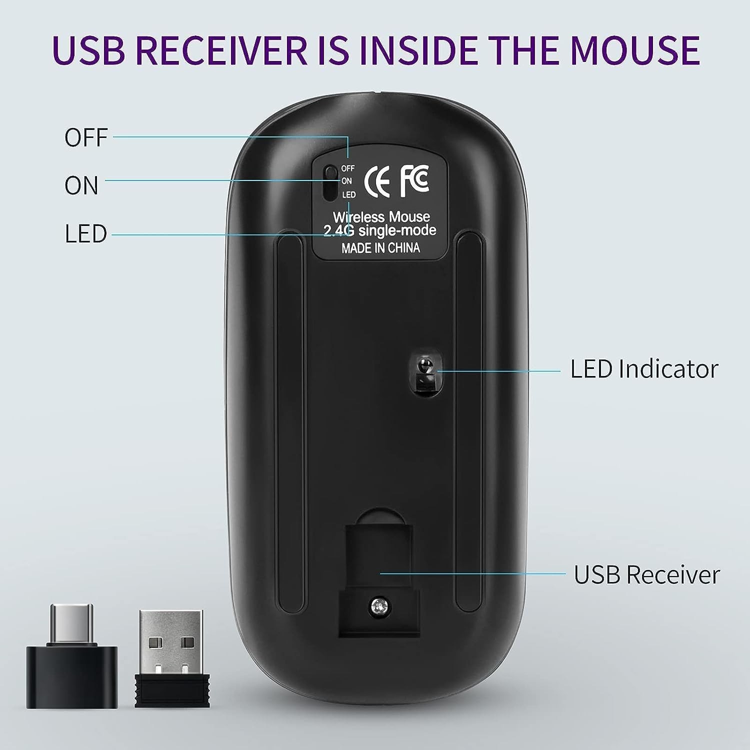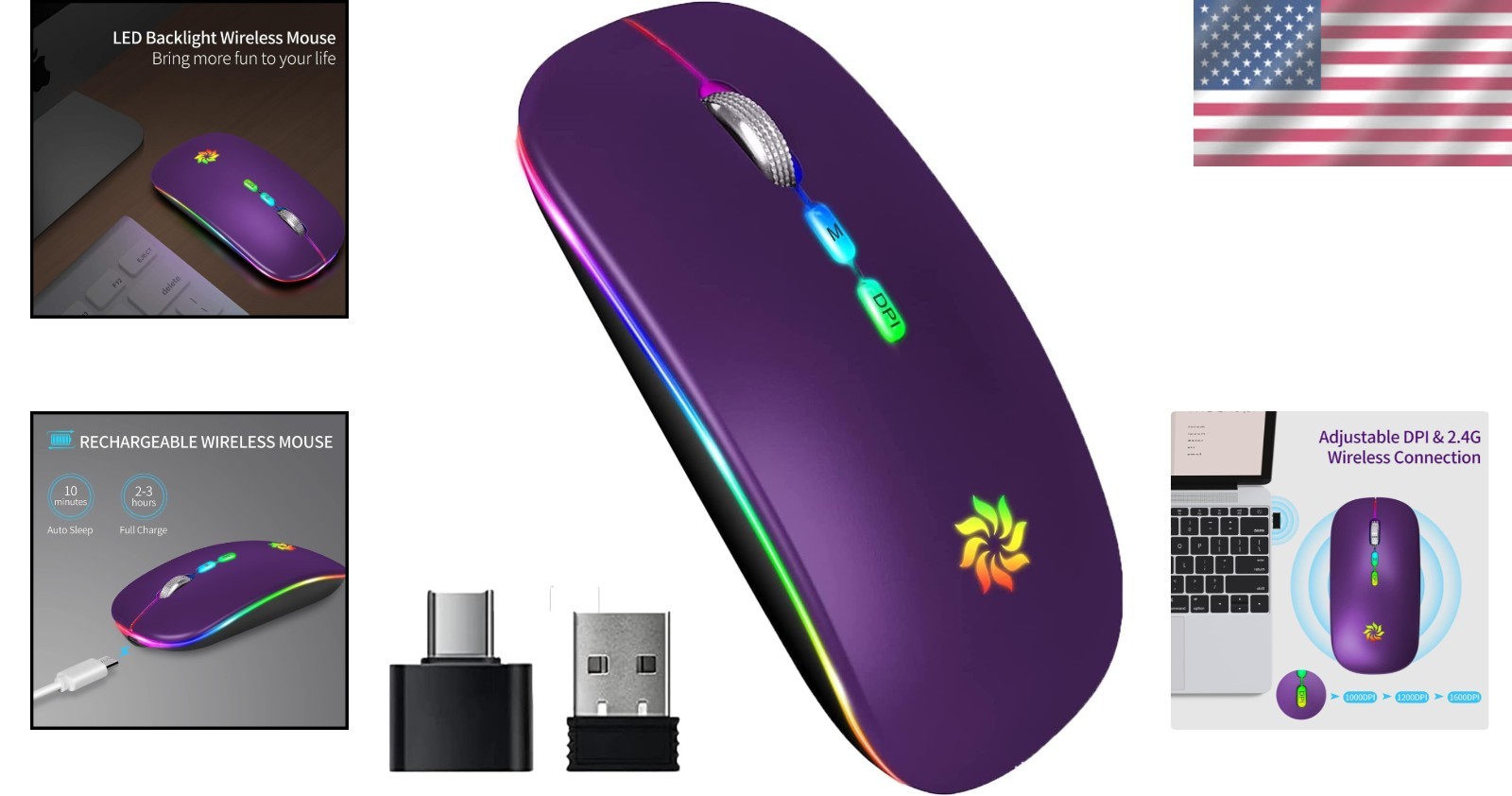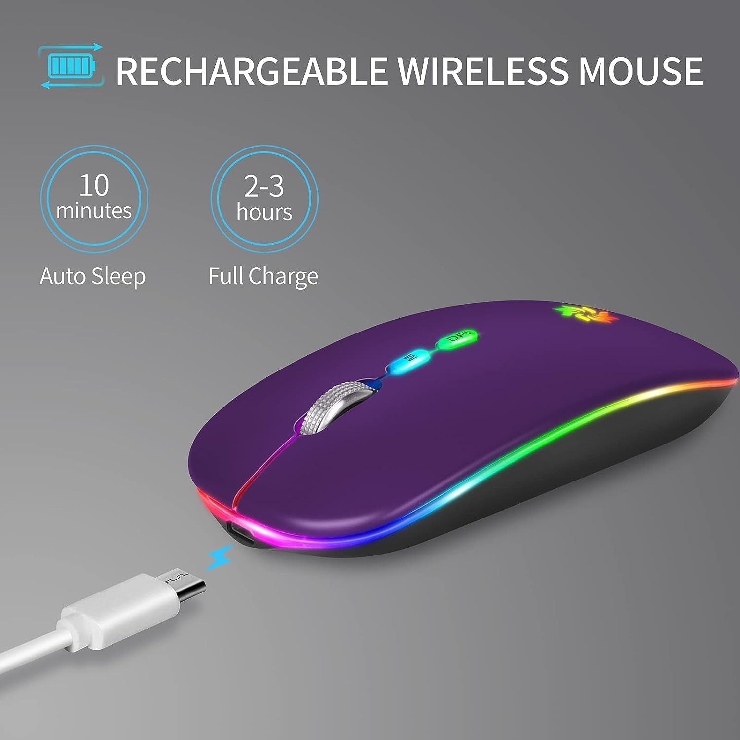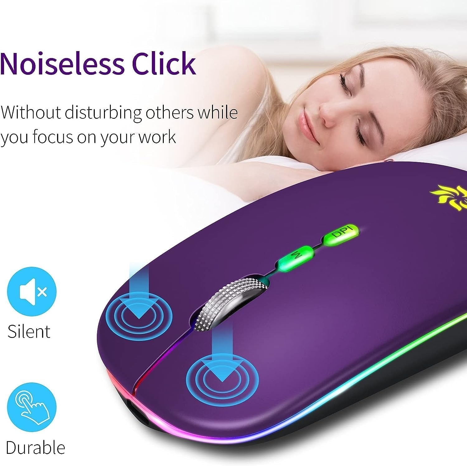 Ultra-Thin Silent Wireless Mouse with Colorful LED Lights Rechargeable Battery