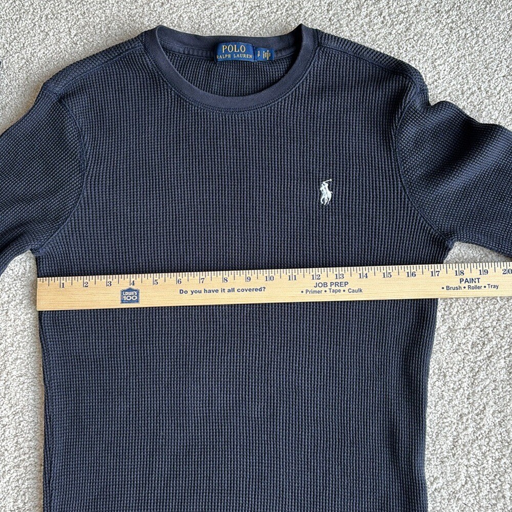 как выглядит Polo Ralph Lauren Blue Waffle Knit Thermal Pullover Long Sleeve Mens Small фото