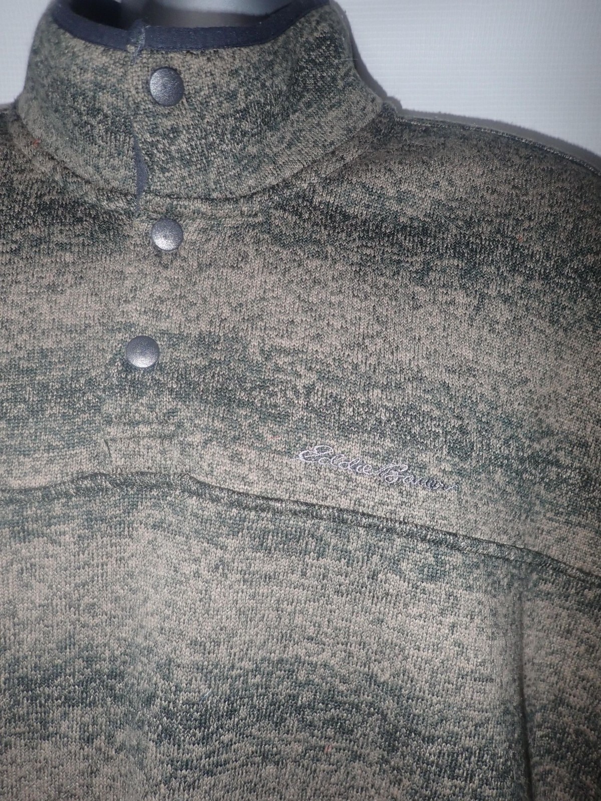 как выглядит Eddie Bauer Sweatshirt Mens 2XL Brown Polyester Knit Fleece Snap Neck Gorpcore фото