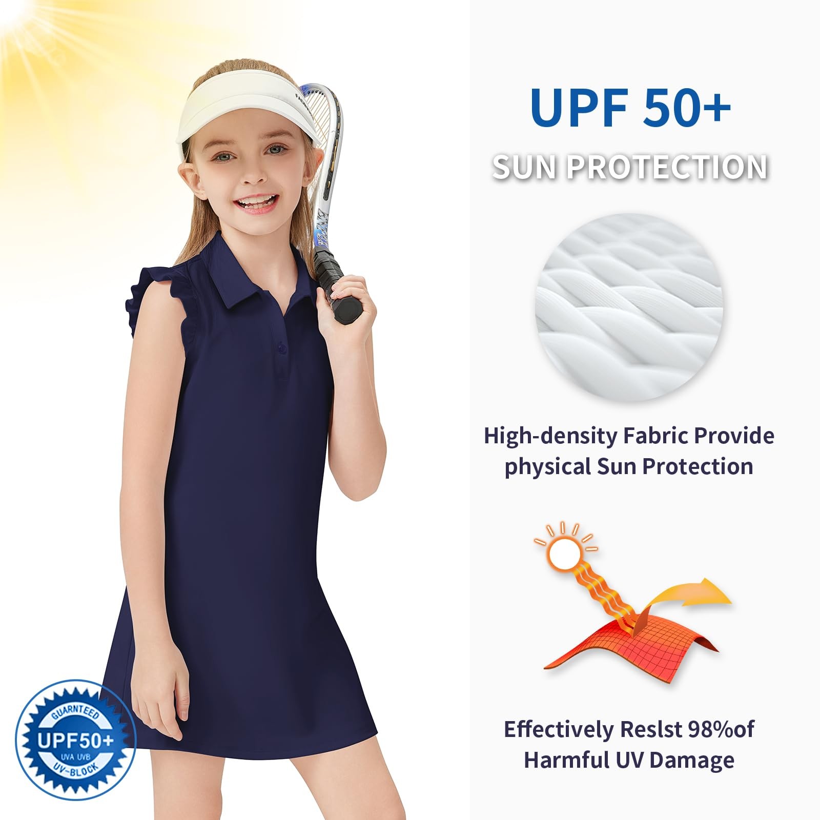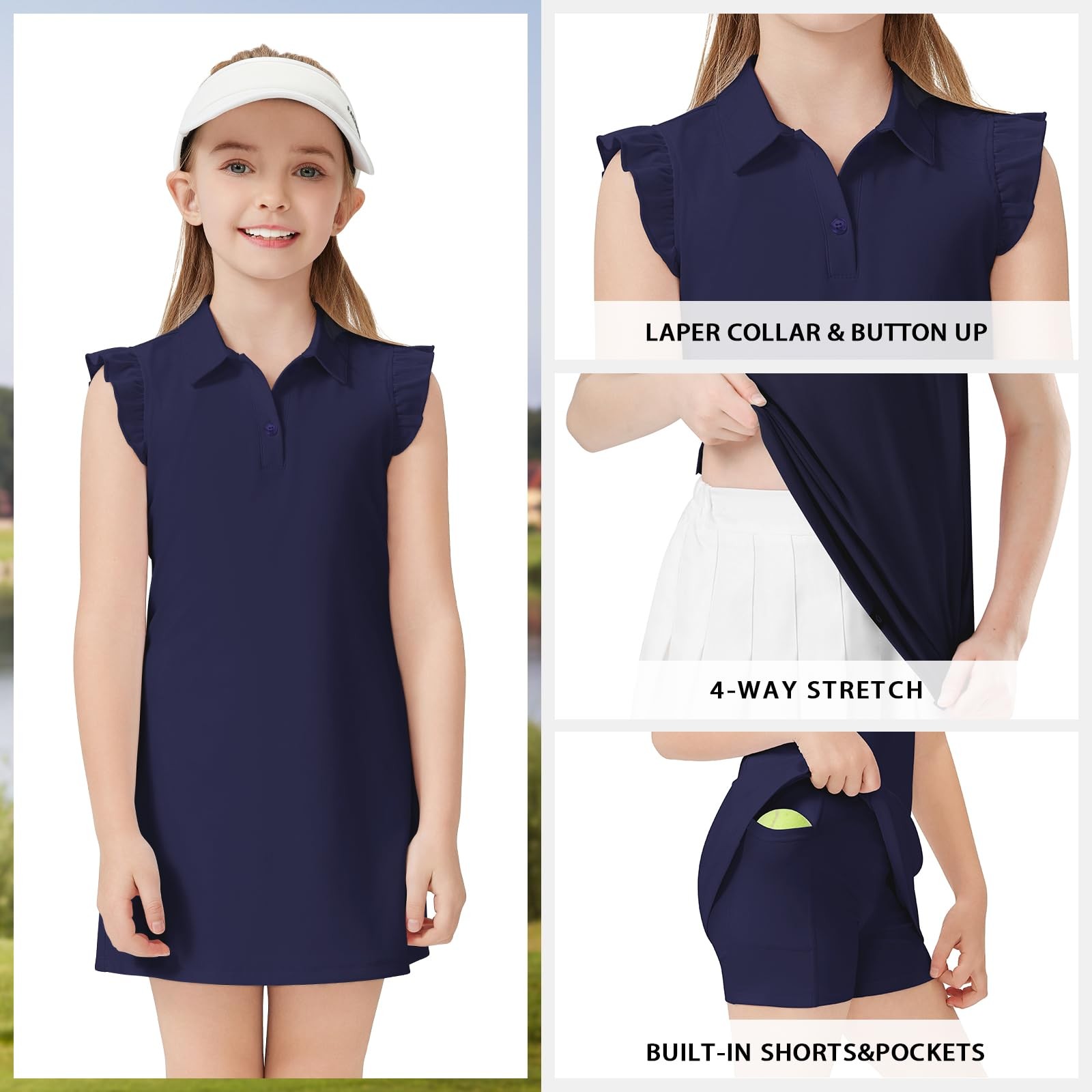 Girls' Golf Dresses Sleeveless Tennis Dress with Shorts Ruffle Sleeve Athleti...