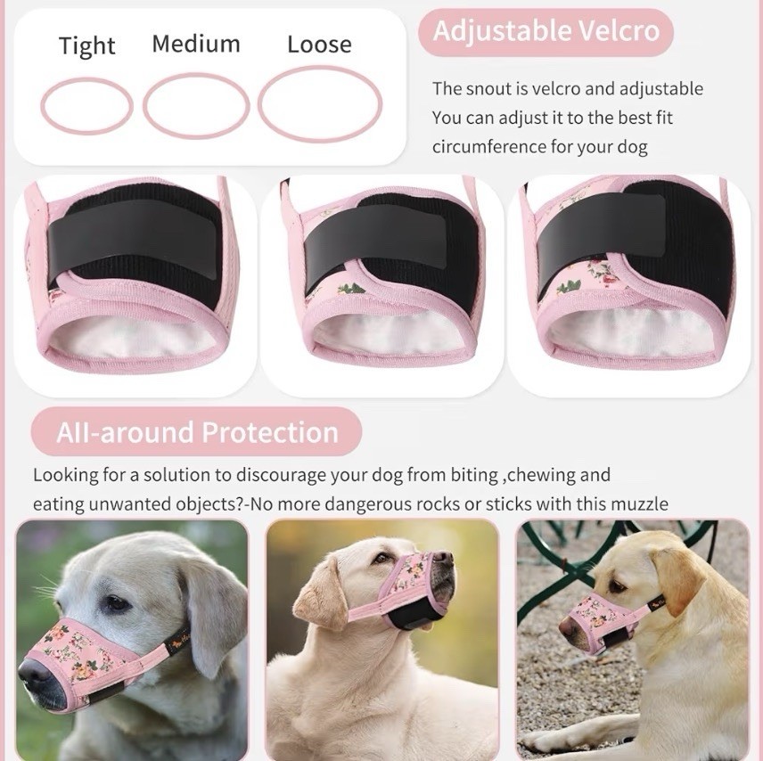 как выглядит Heele Soft Nylon Dog Muzzle, Anti Biting Chewing, Breath/drinkable - Medium Pink фото