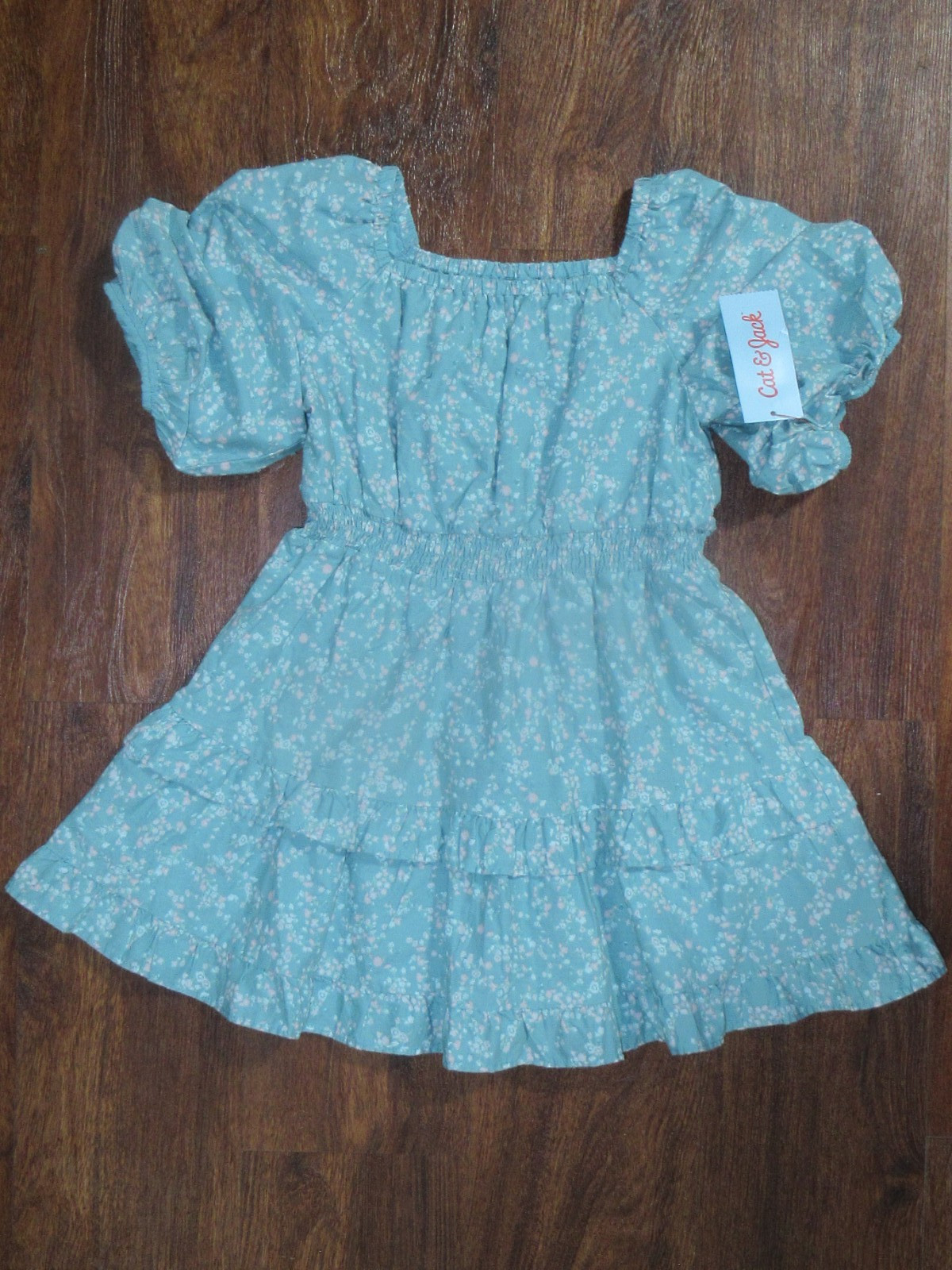 Cat Jack Girls Green Floral Puff Tiered Dress Size XS 4-5 Balloon Sleeves NWT