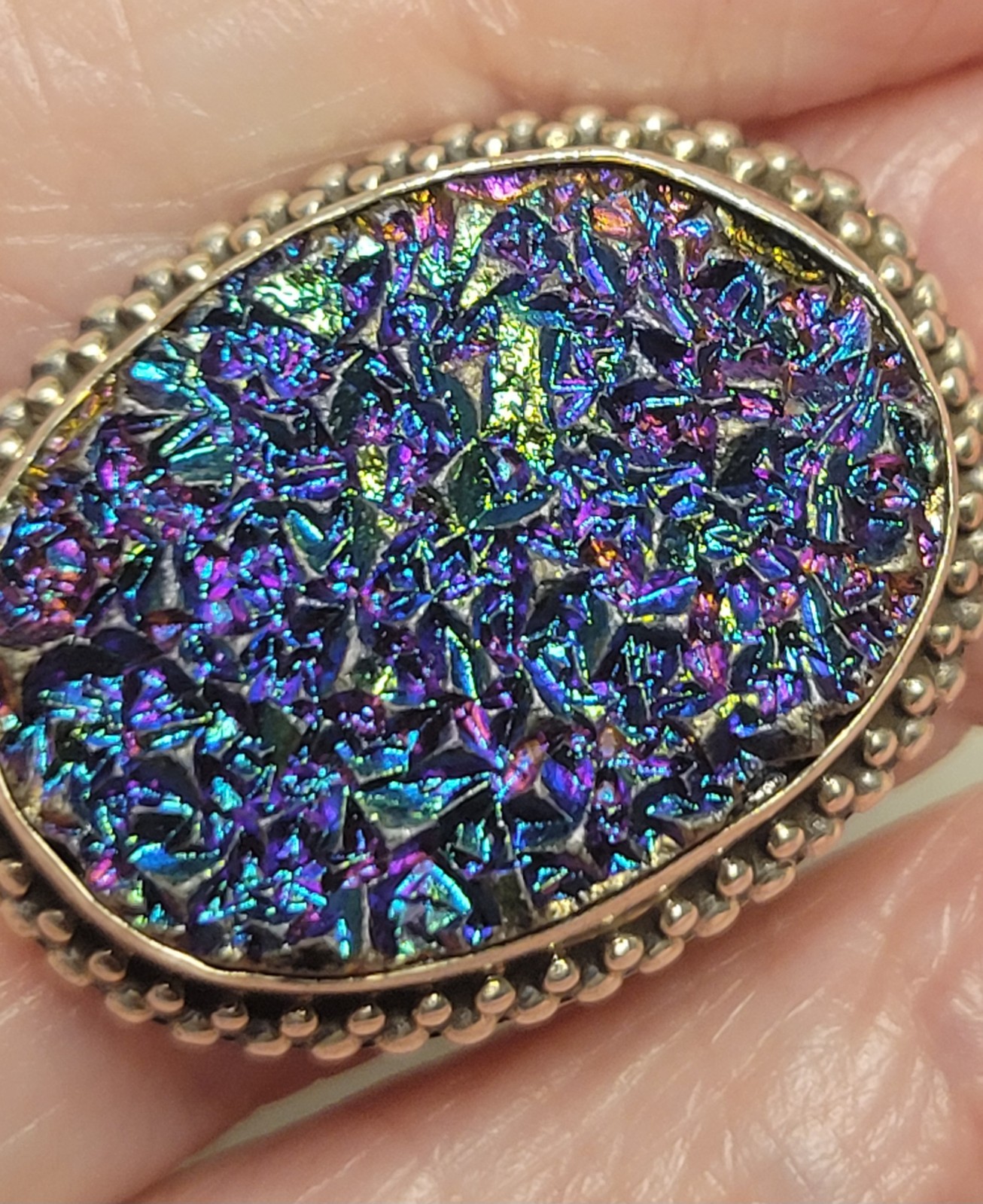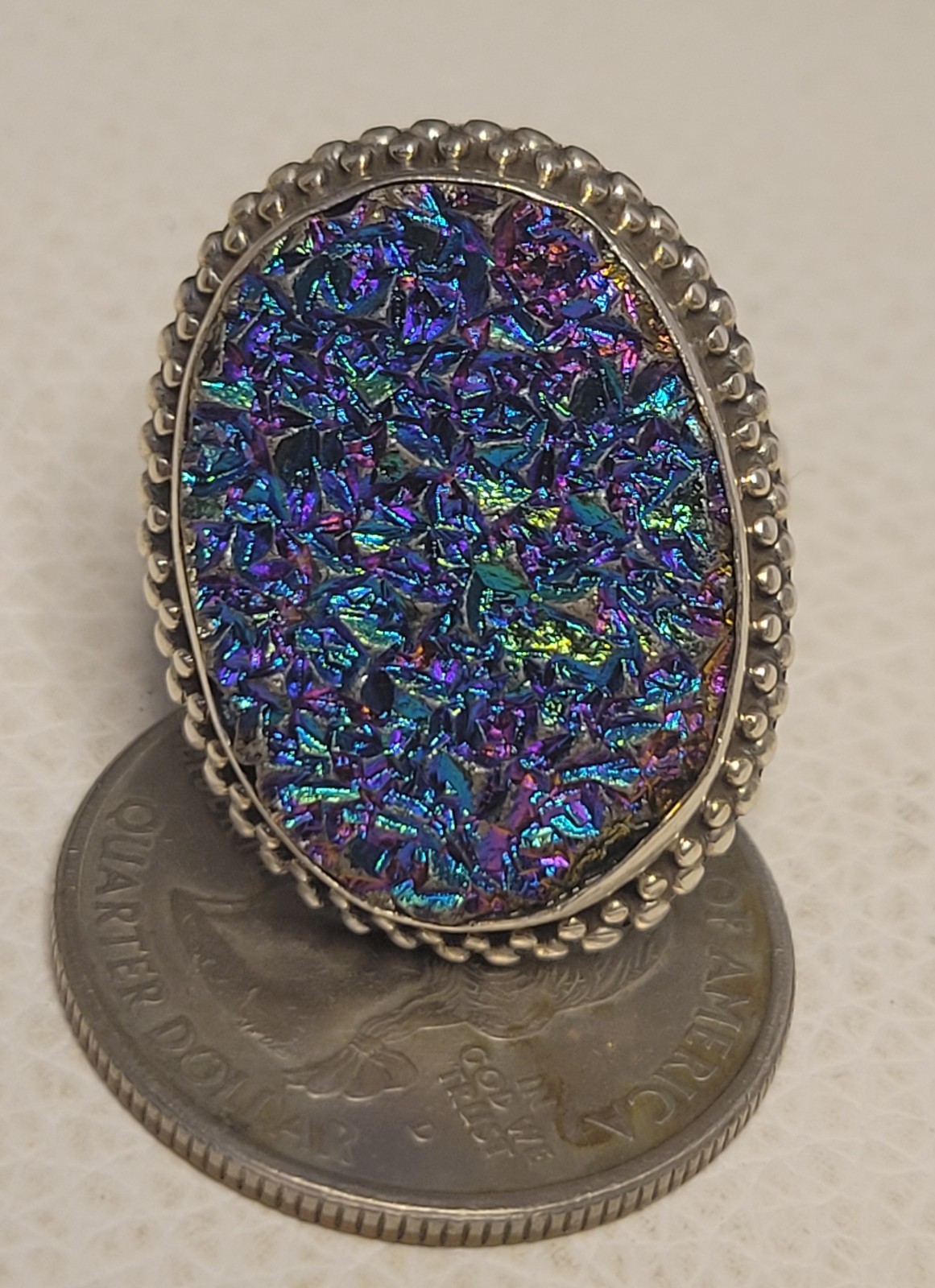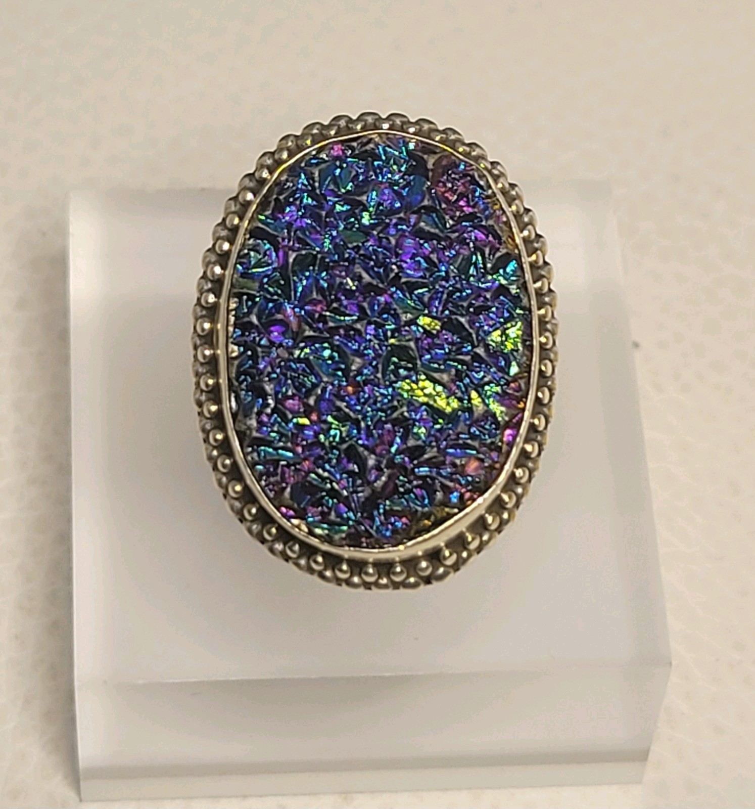 как выглядит Vintage Sterling Silver Handcrafted Oval Druzy Statement Ring фото