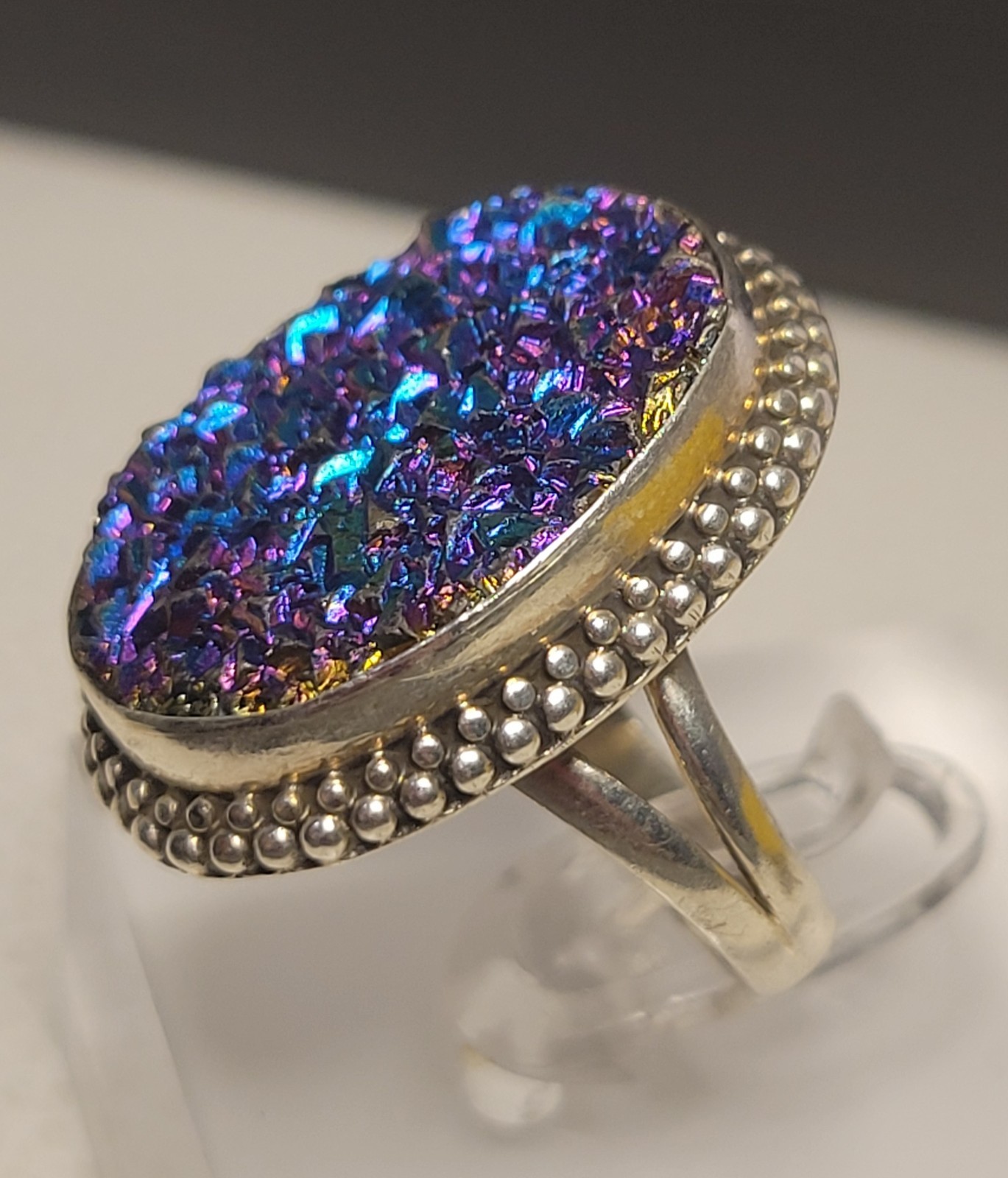 Vintage Sterling Silver Handcrafted Oval Druzy Statement Ring