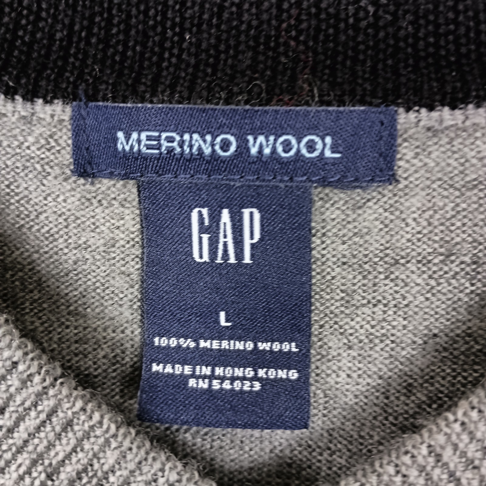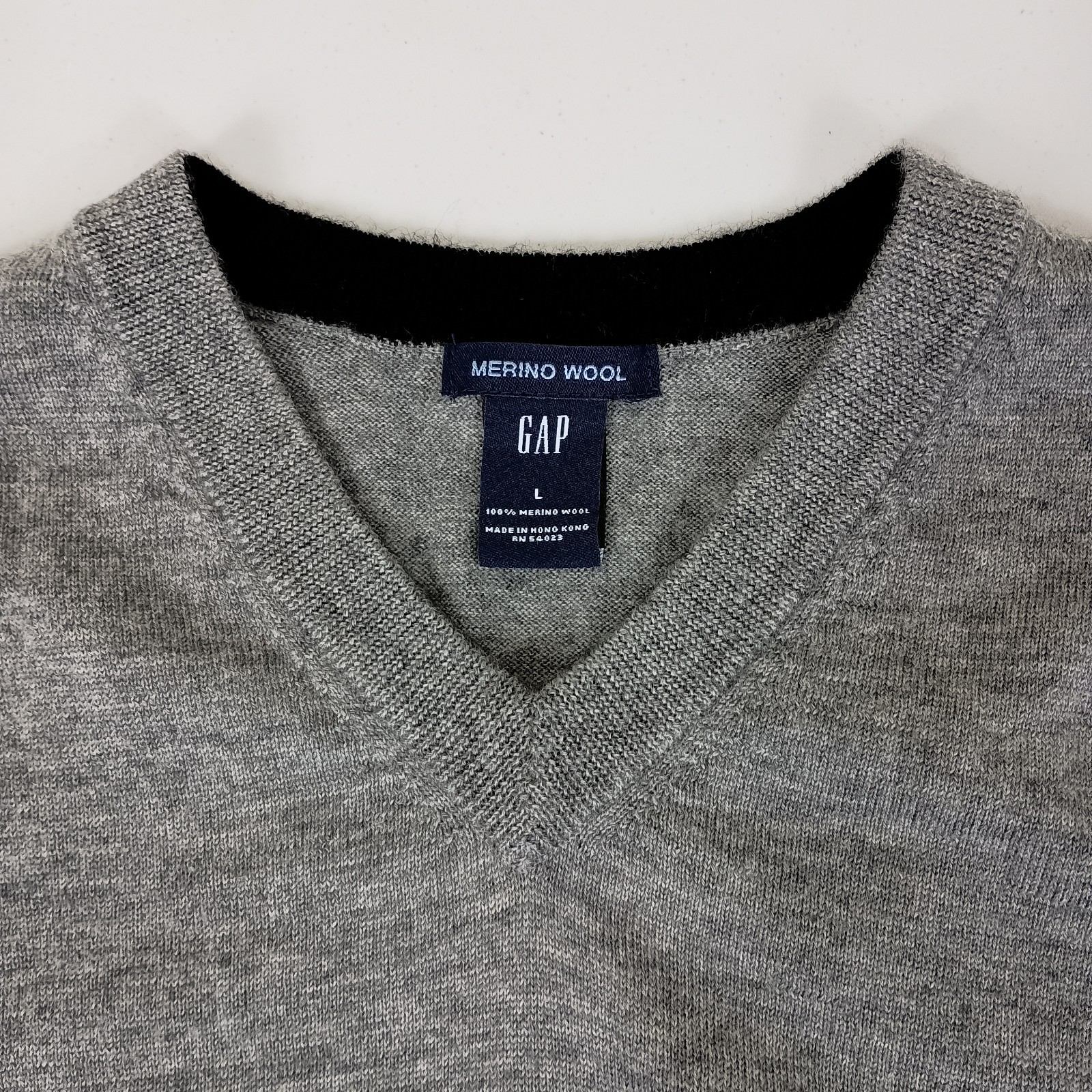 Vintage Gap V Neck Sweater Large Mens Gray 100 Merino Wool Soft Hong Kong 2004