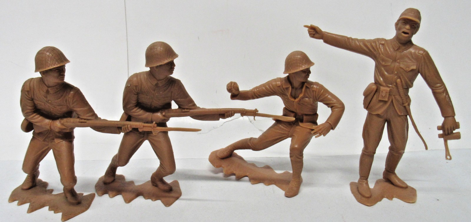 как выглядит Vintage Marx 5" Army Men WWII Green Tan Lot Of 10 US Russian Japanese Soldiers фото