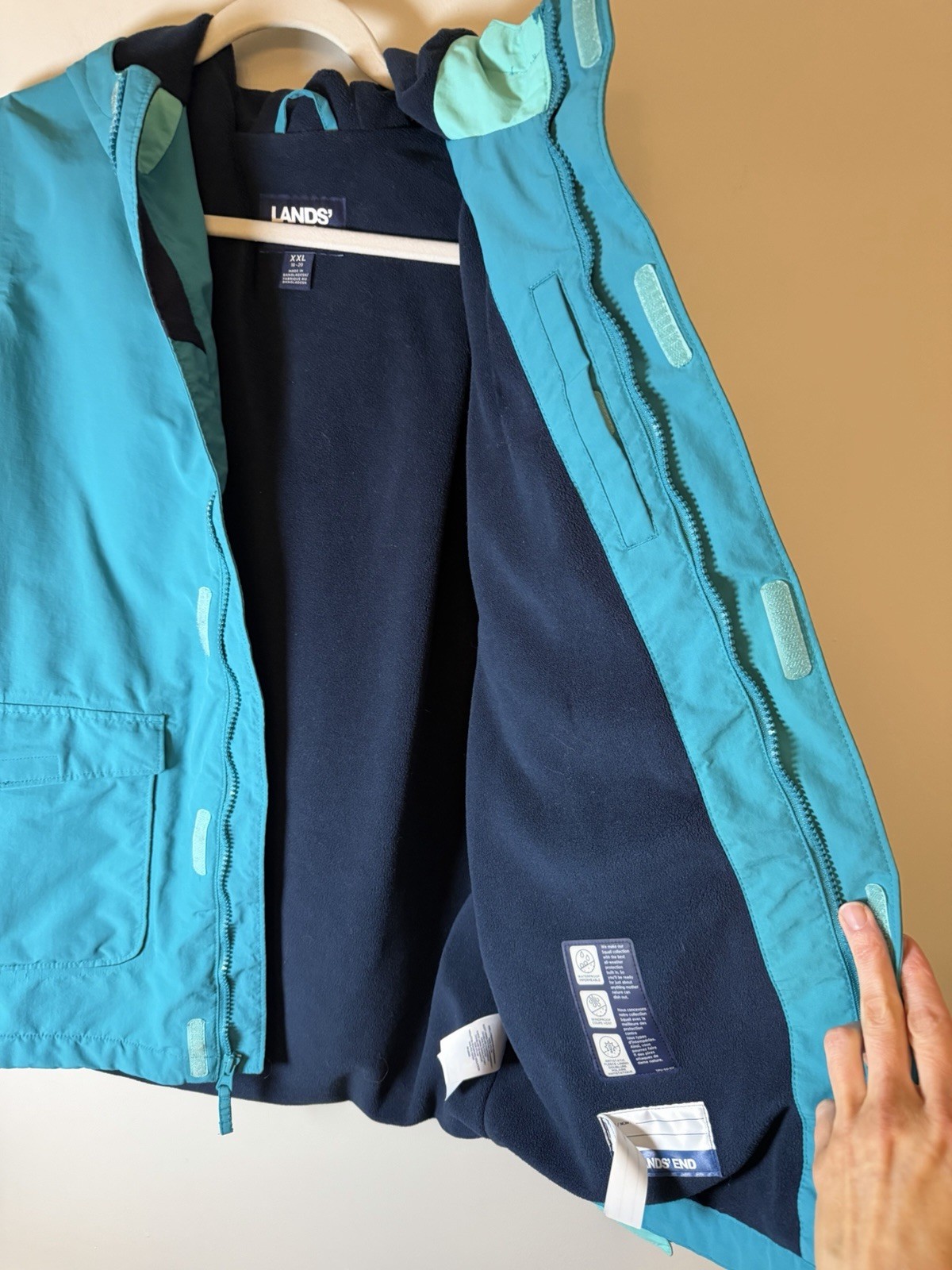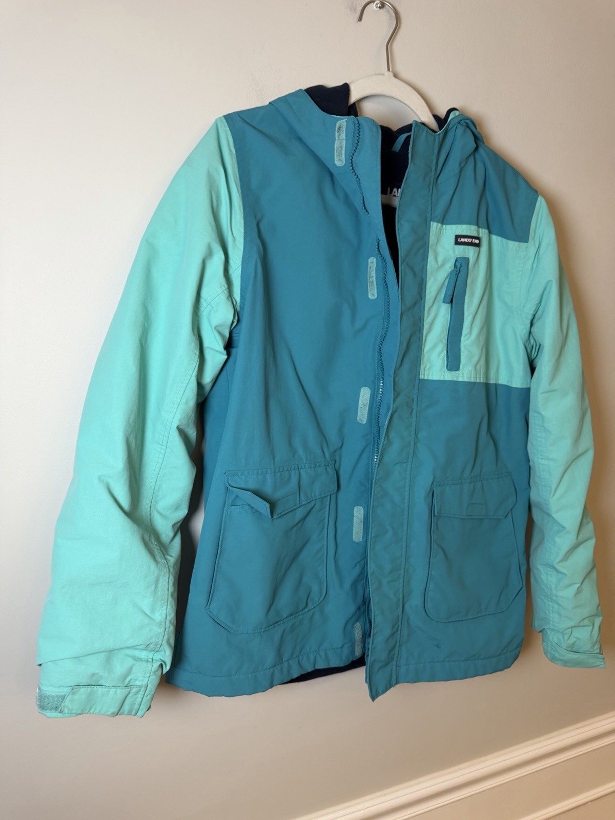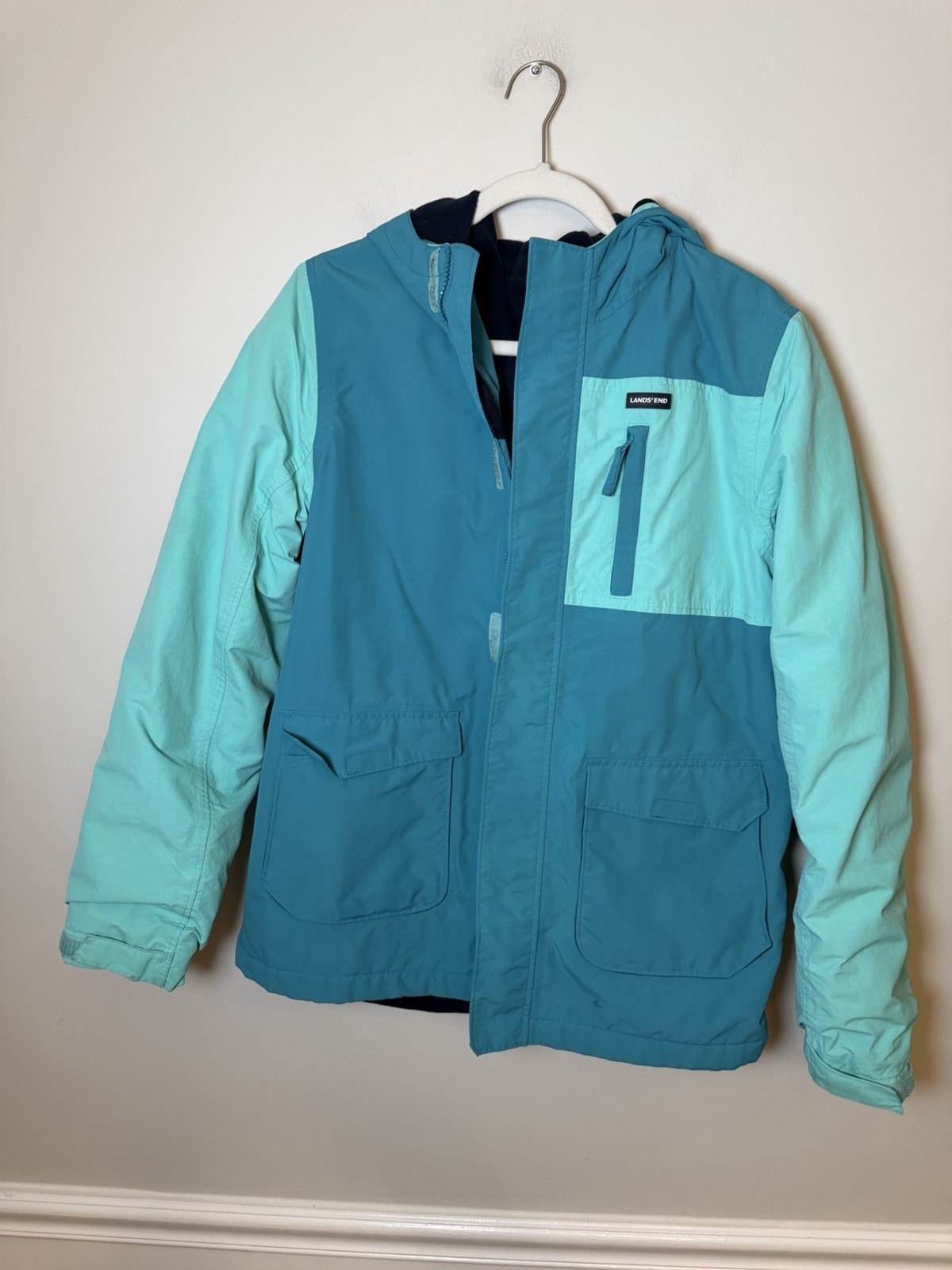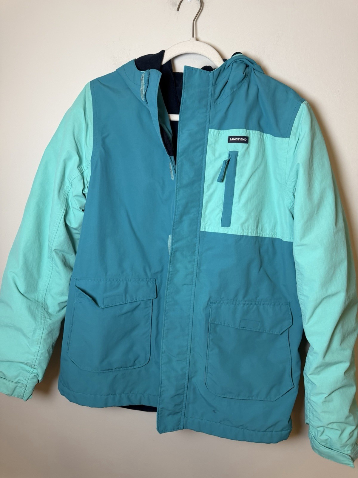 как выглядит Lands End Kids Squall Fleece Lined Waterproof Insulated Jacket Teal XL Sz 14-16 фото