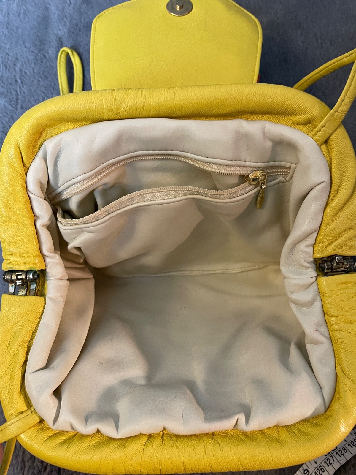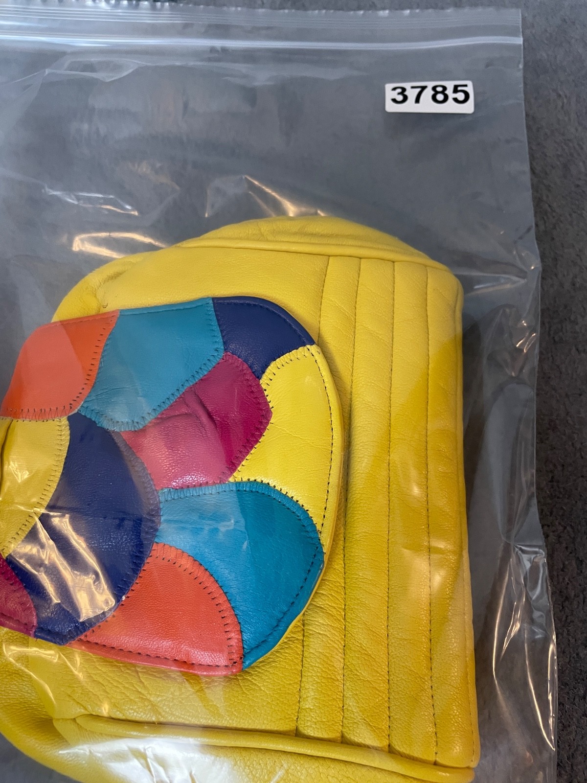 как выглядит Vintage Handbag Yellow Multicolor Flap Over Leather Clutch Crossbody Purse VTG фото