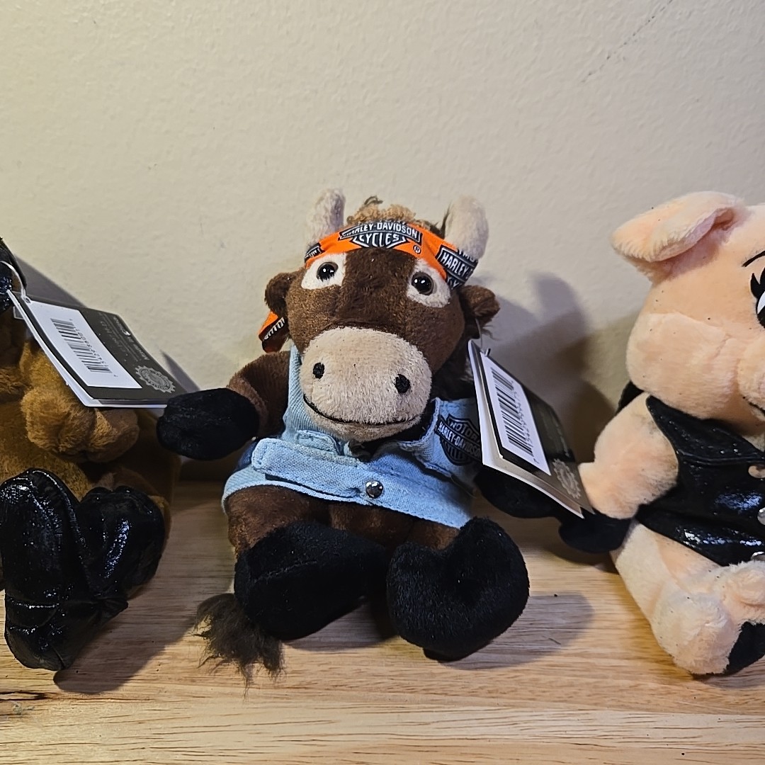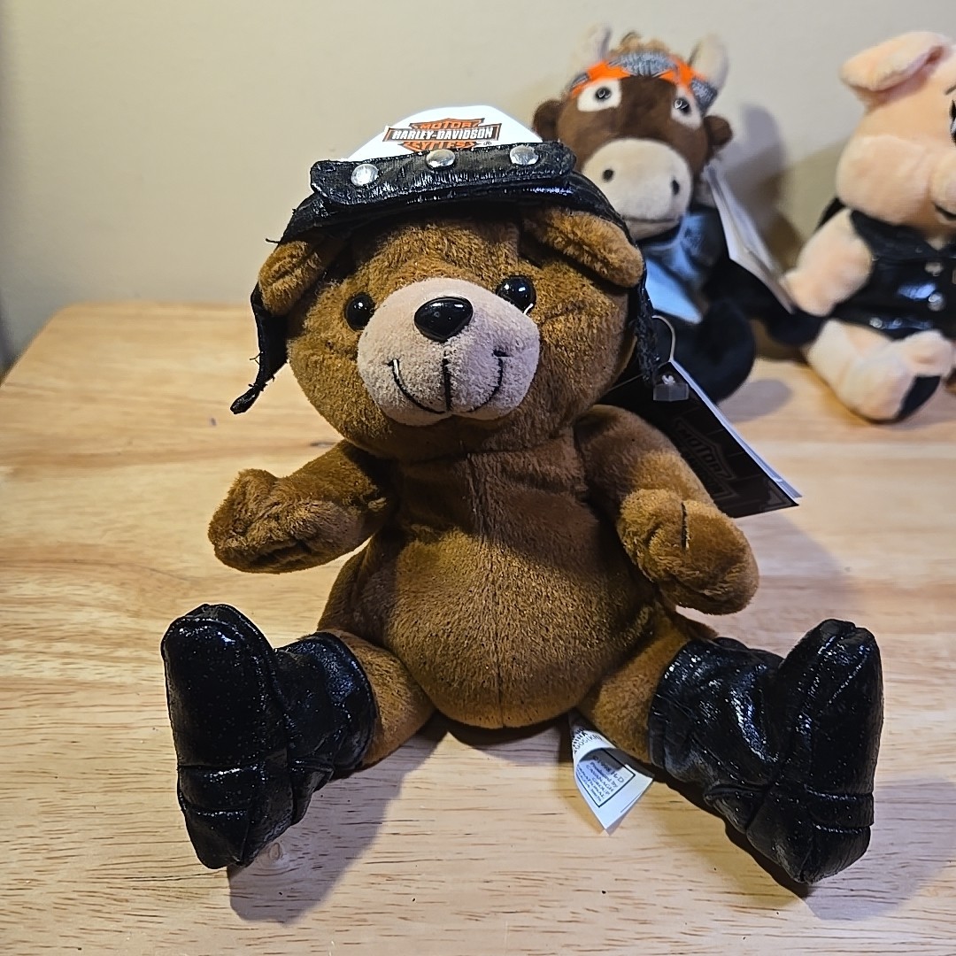 как выглядит Vintage Harley Davidson Motorcycle Biker Bean Bag Plush Lot Of 3 1998-1999 фото