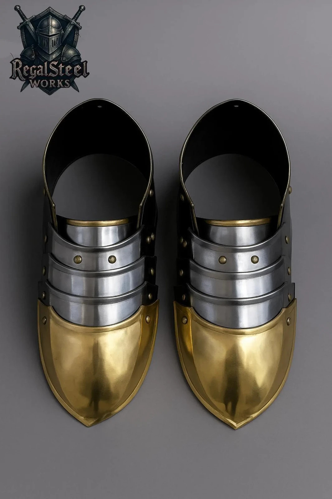 • Medieval Steel Sabatons Knight's Brass Foot Armor, LARP Cosplay