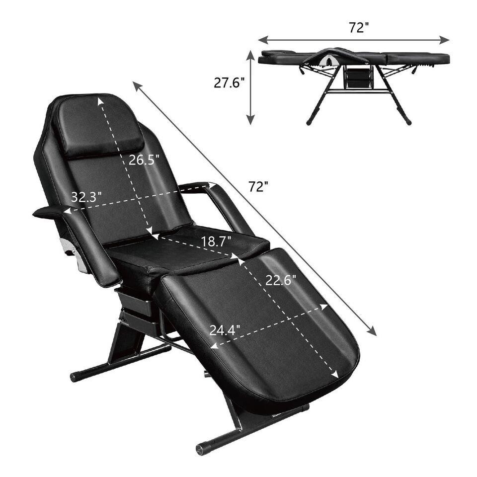 Recliner Massage Table Salon Tattoo Chair Facial Lash Bed w/Storage Boxes