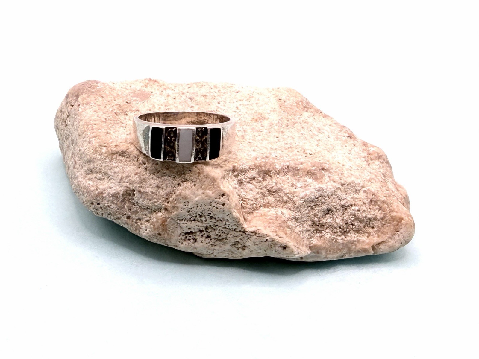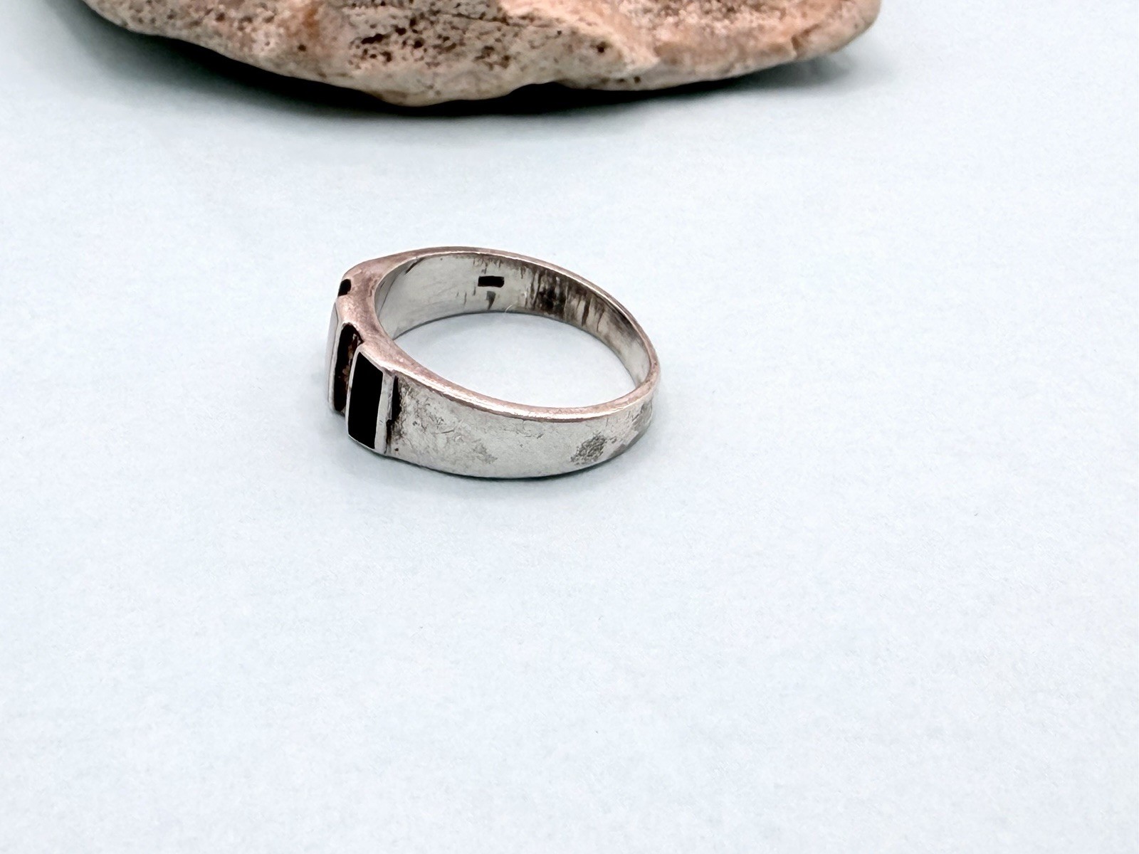 Sterling silver 925 Vintage mother of pearl Onyx Inlay marcasite ring size 6.25