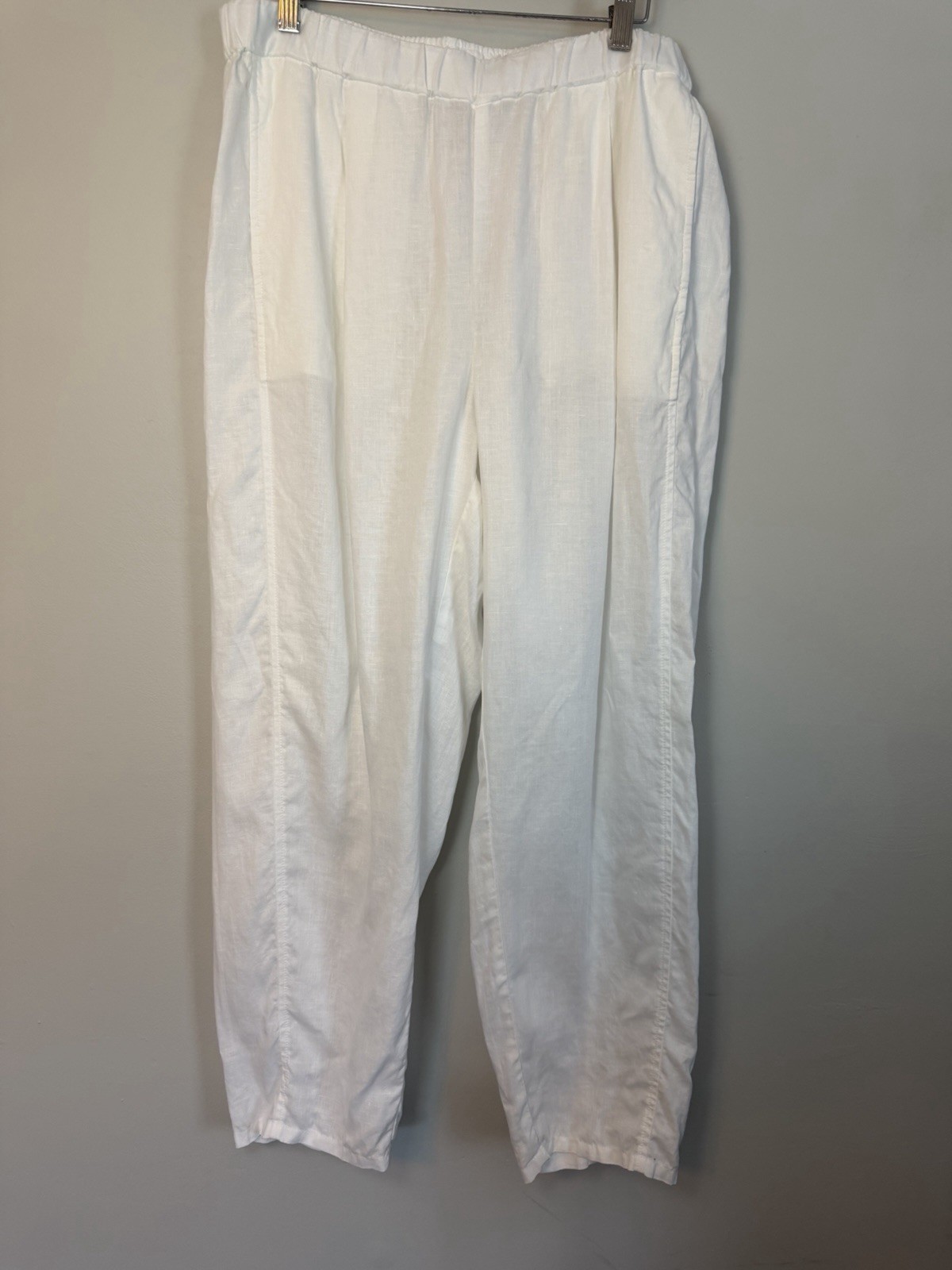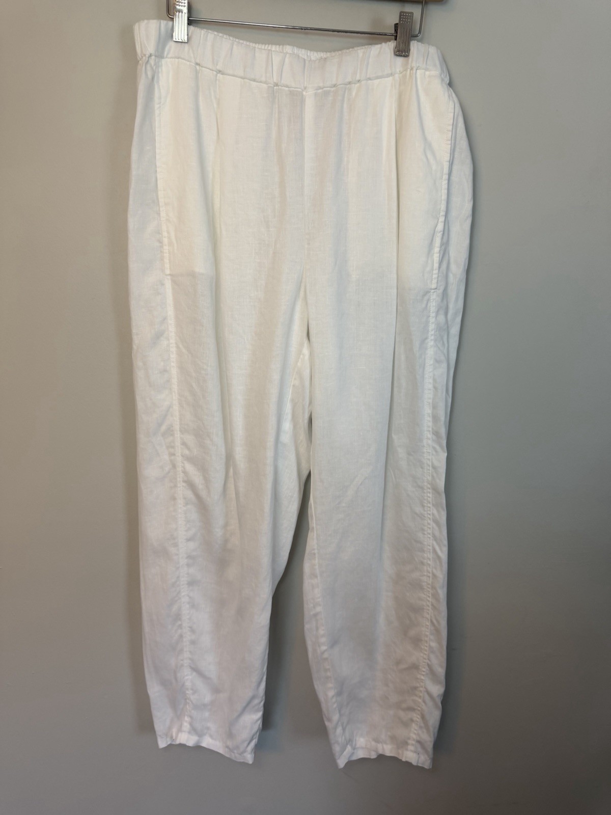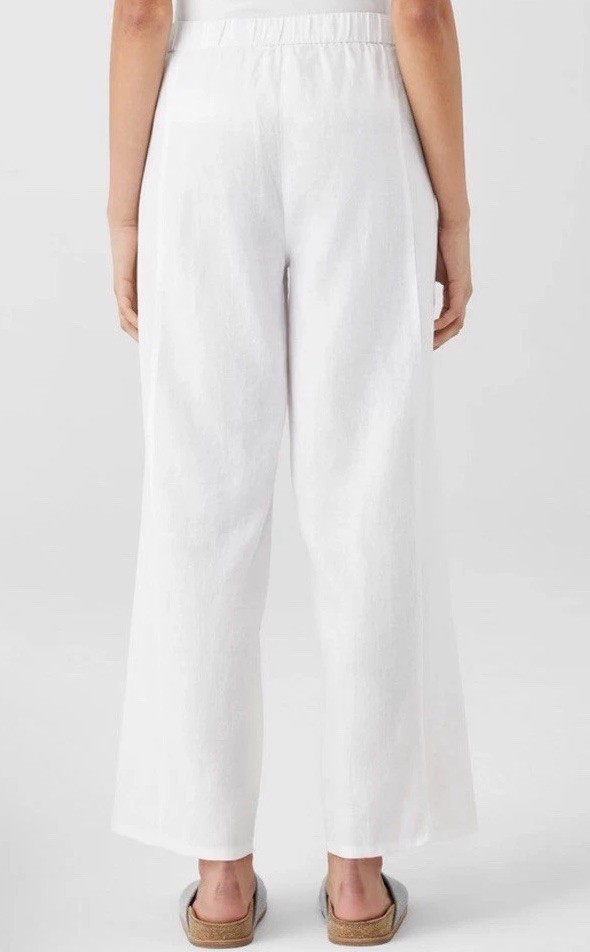 как выглядит Eileen Fisher Organic Linen Trouser Pull On Pant White Sz M Elastic Waist NEW фото